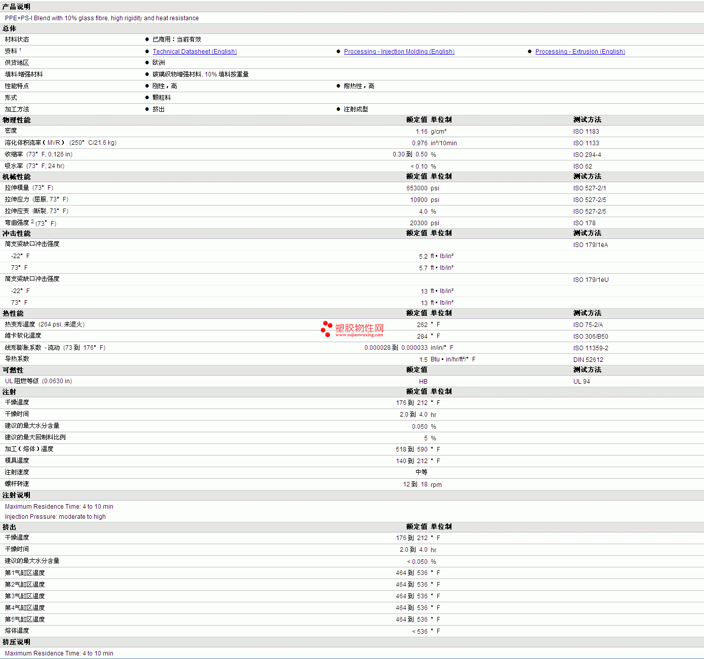 | 溶化体积流率(MVR) (250°C/21.6 kg) | 0.976 | in³/10min | ISO 1133 |