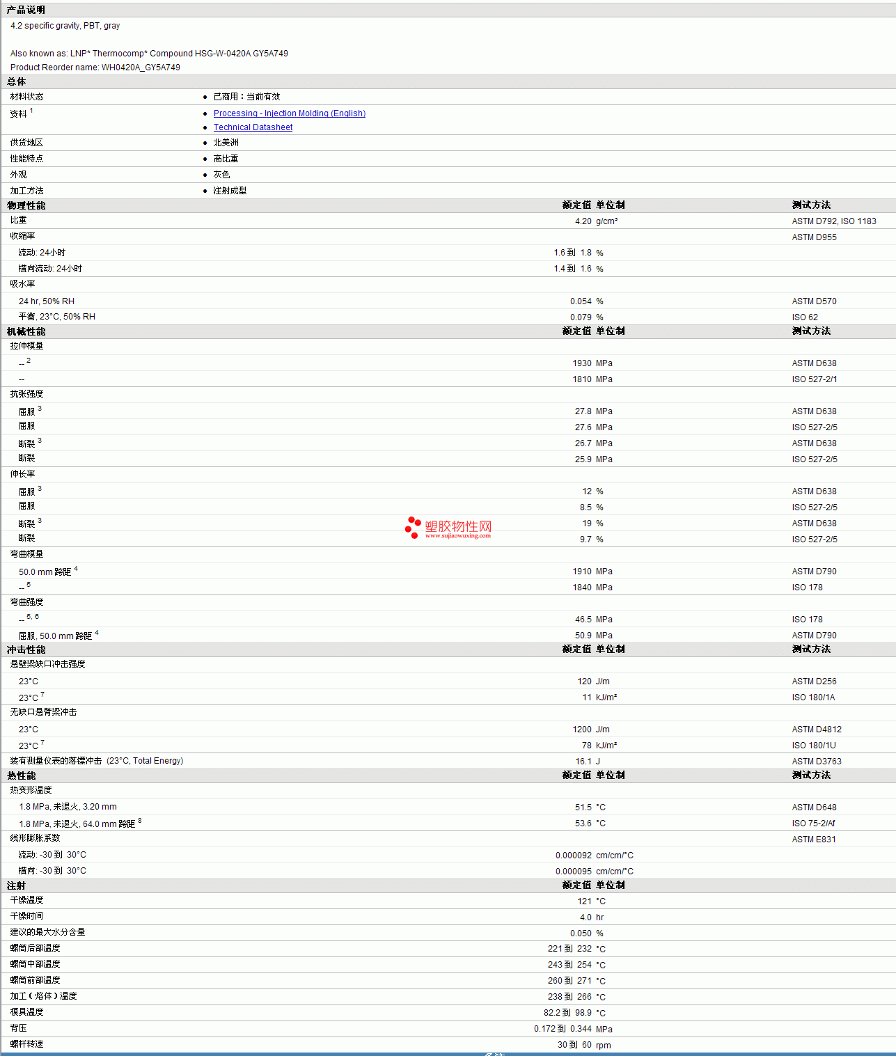LNP pbt Thermocomp WH0420A_GY5A749物性表见图片