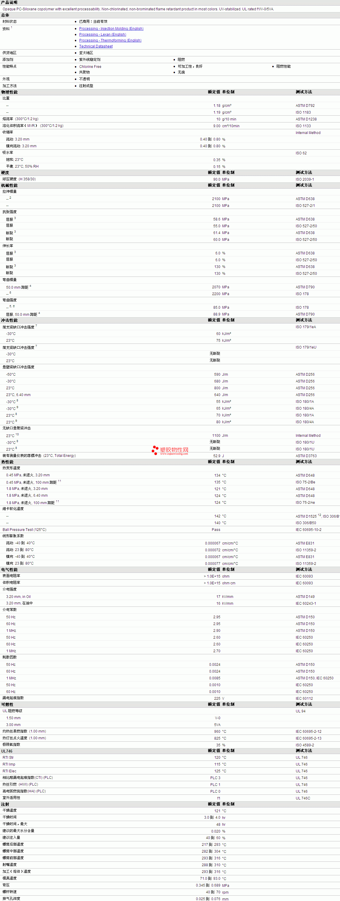 LEXAN PC EXL9330 Resin物性表详情见附件