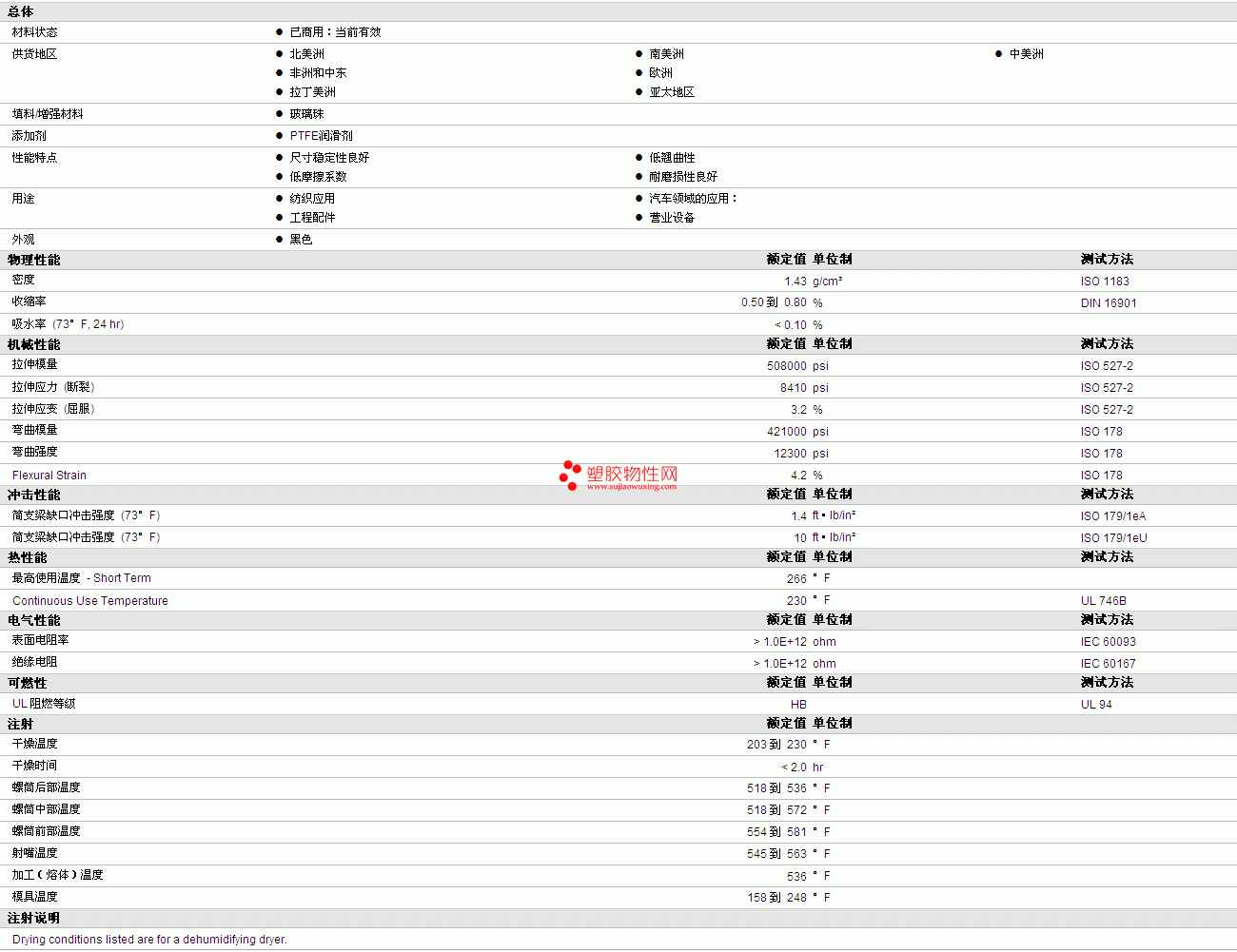 | 拉伸模量 | 508000 | psi | ISO 527-2 |