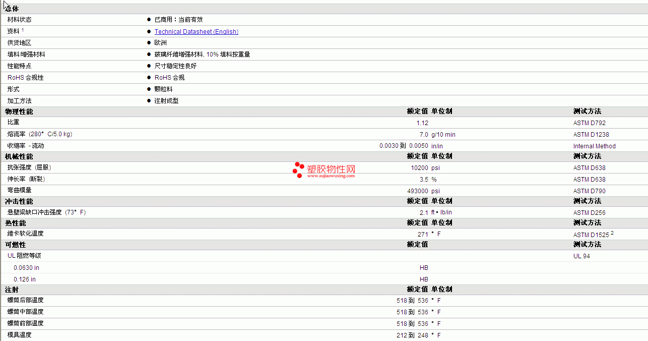 | 机械性能 | 额定值 | 单位制 | 测试方法 |