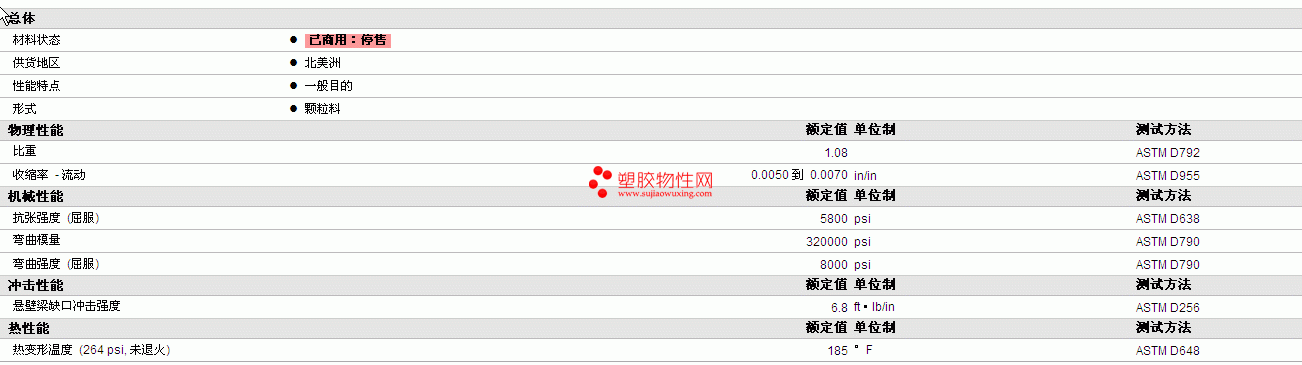 | 机械性能 | 额定值 | 单位制 | 测试方法 |