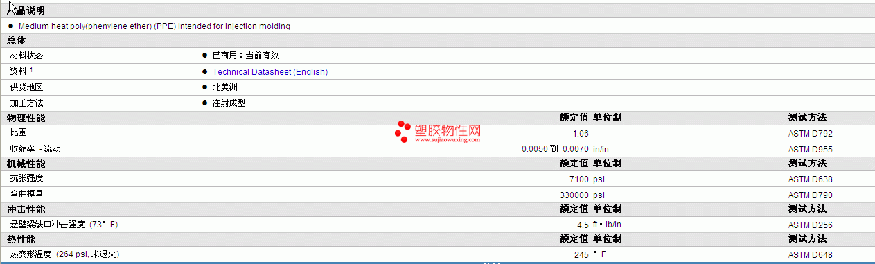 | 悬壁梁缺口冲击强度 (73°F) | 4.5 | ft·lb/in | ASTM D256 |