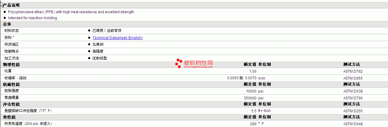 Norpex PPE AX290物性表 详细情况如图