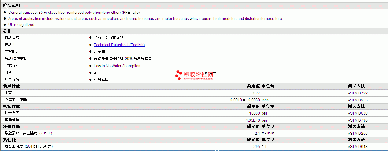 | 收缩率 - 流动 | 0.0010 到 0.0030 | in/in | ASTM D955 |