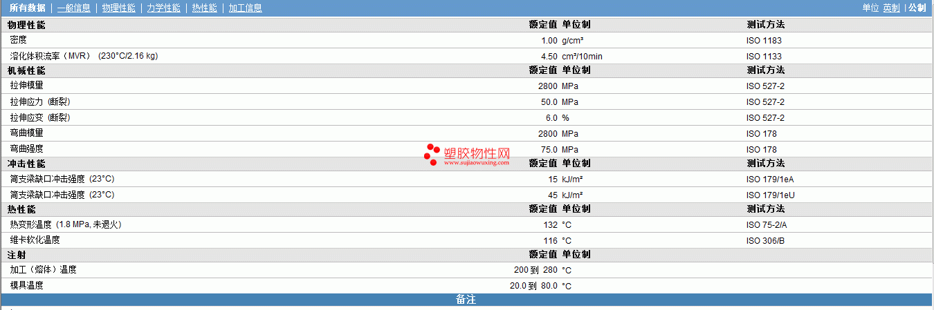 | 机械性能 | 额定值 | 单位制 | 测试方法 |