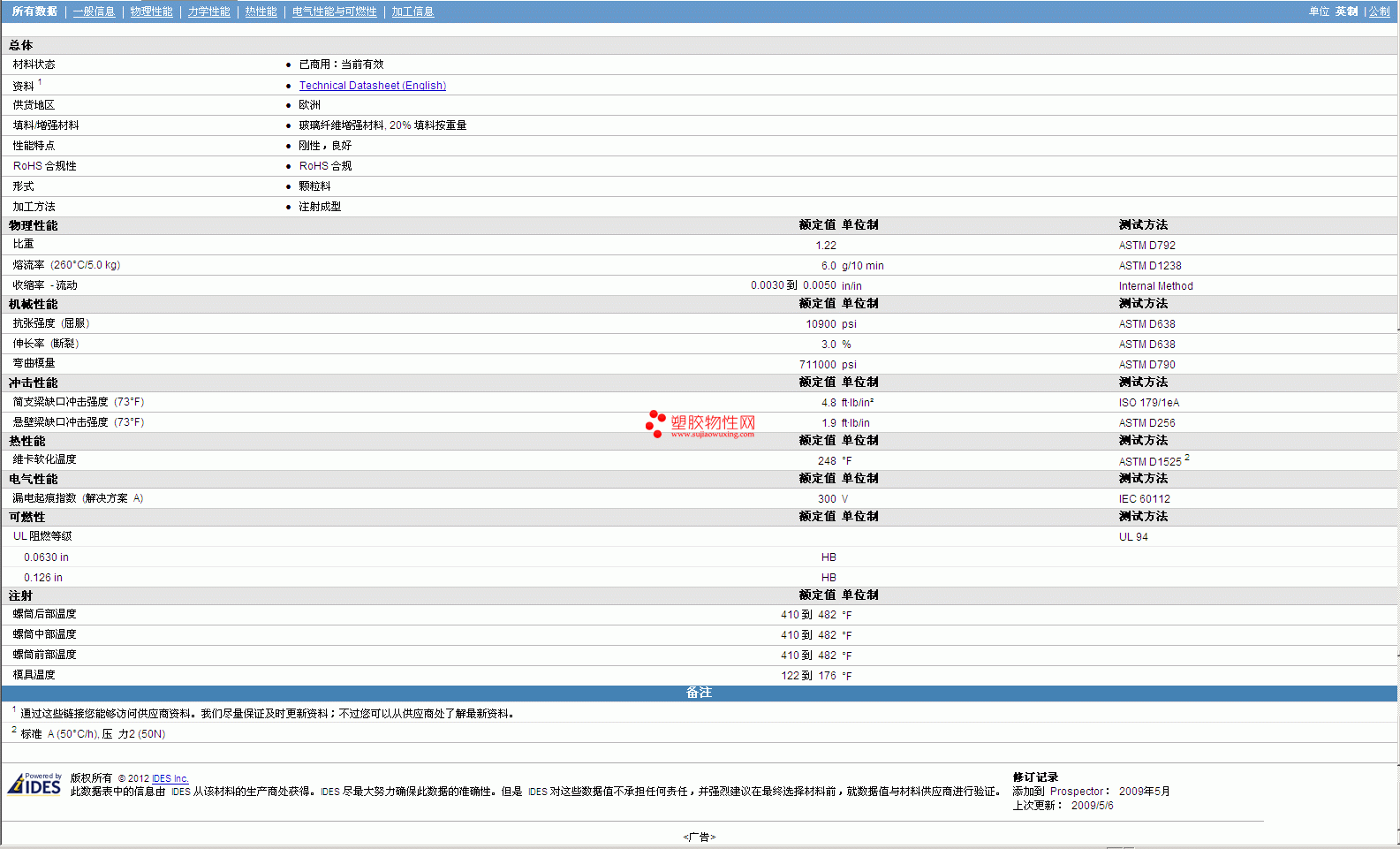 其他工程塑料物性表