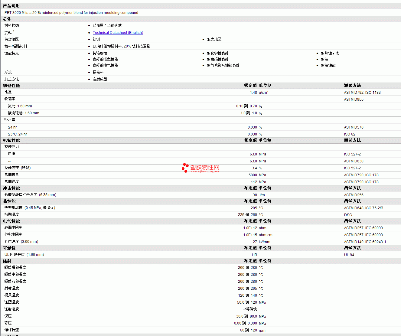 LONGLITE PBT 3020 M物性表见图片