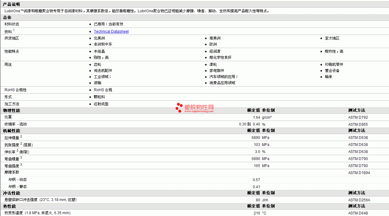 LubriOne PBT PS-30GF/15T Natural物性表 图片
