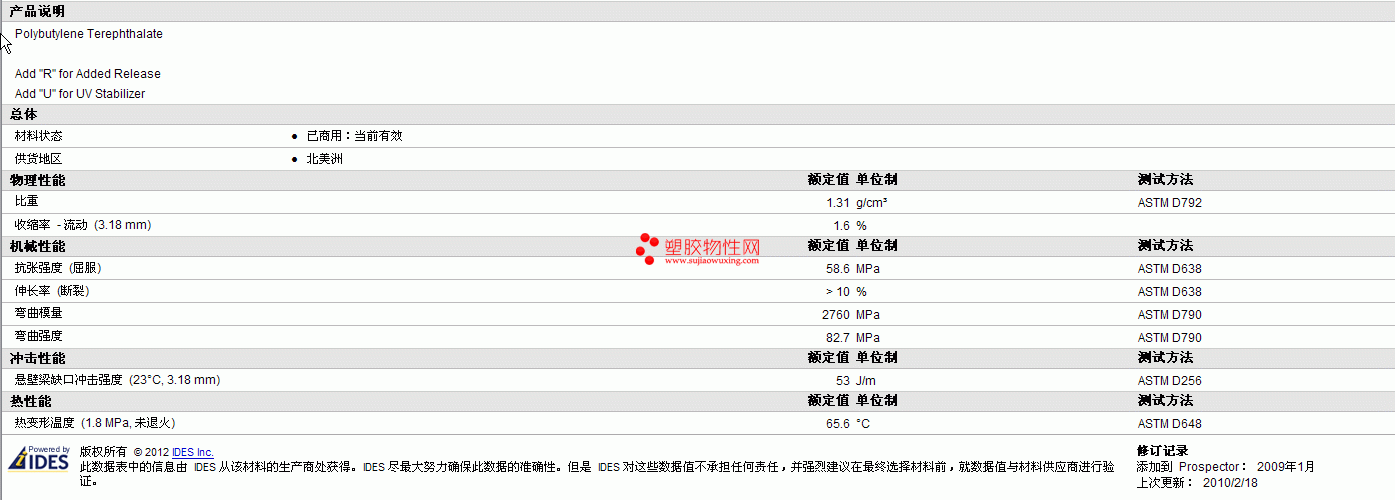 Lucent PBT PBT-310物性表