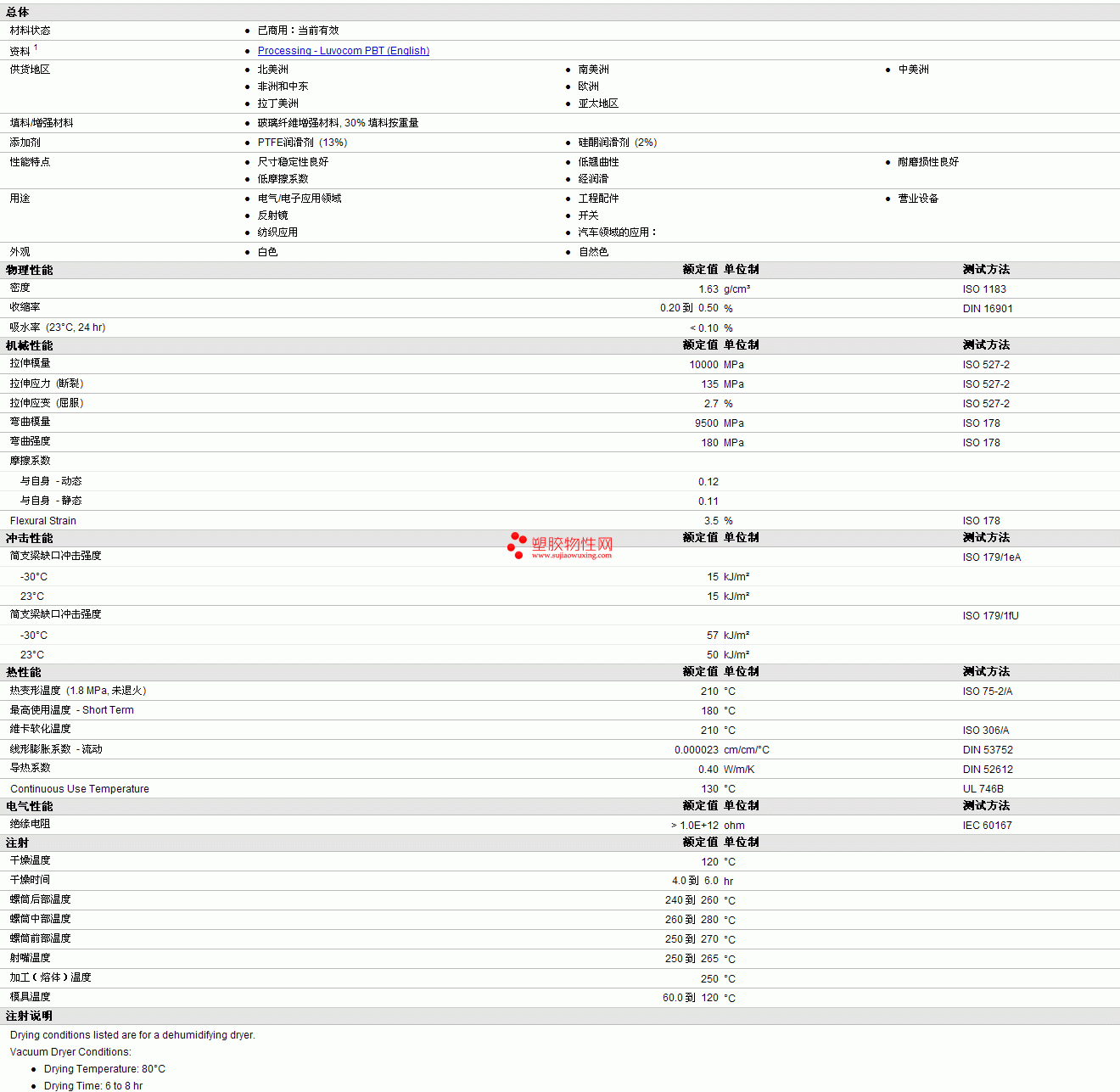 Luvocom 1850/GF/30/TF/13/SI/2物性表 见图片