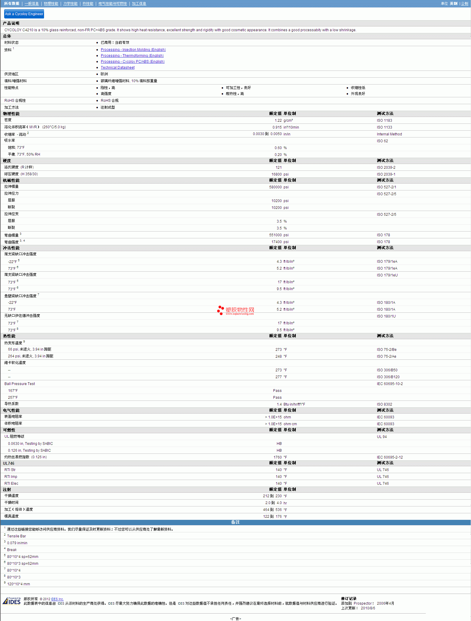 更多CYCOLOY ABS/PC C4210 Resin物性表图片,报价、物质安全资料表(MSDS)、材质证明、UL黄卡等,最新行情报价等可来电咨询赵先生:13424755533或QQ: 27660005