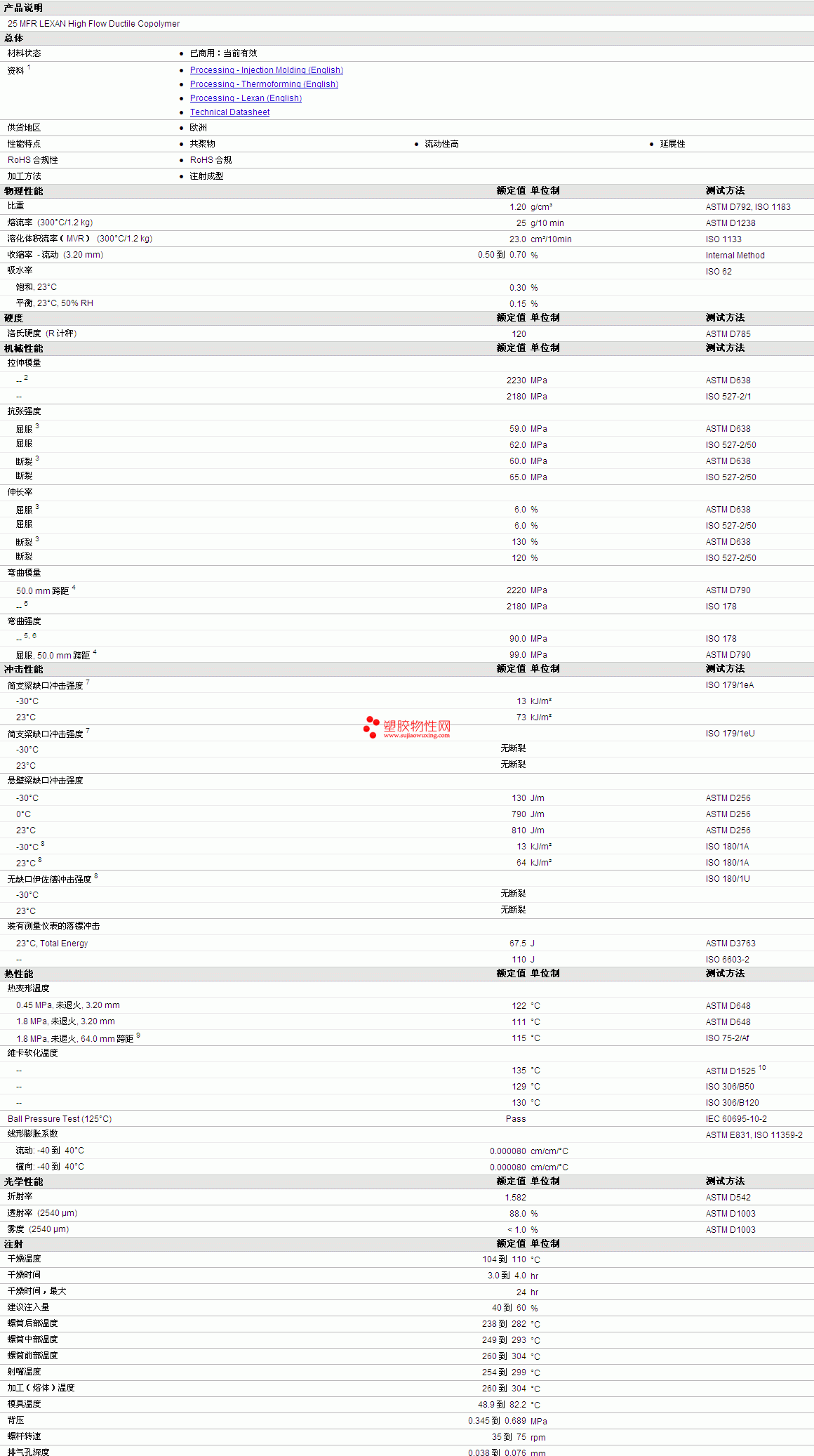 LEXAN PC HFD1711 Resin物性表 更多资料见图