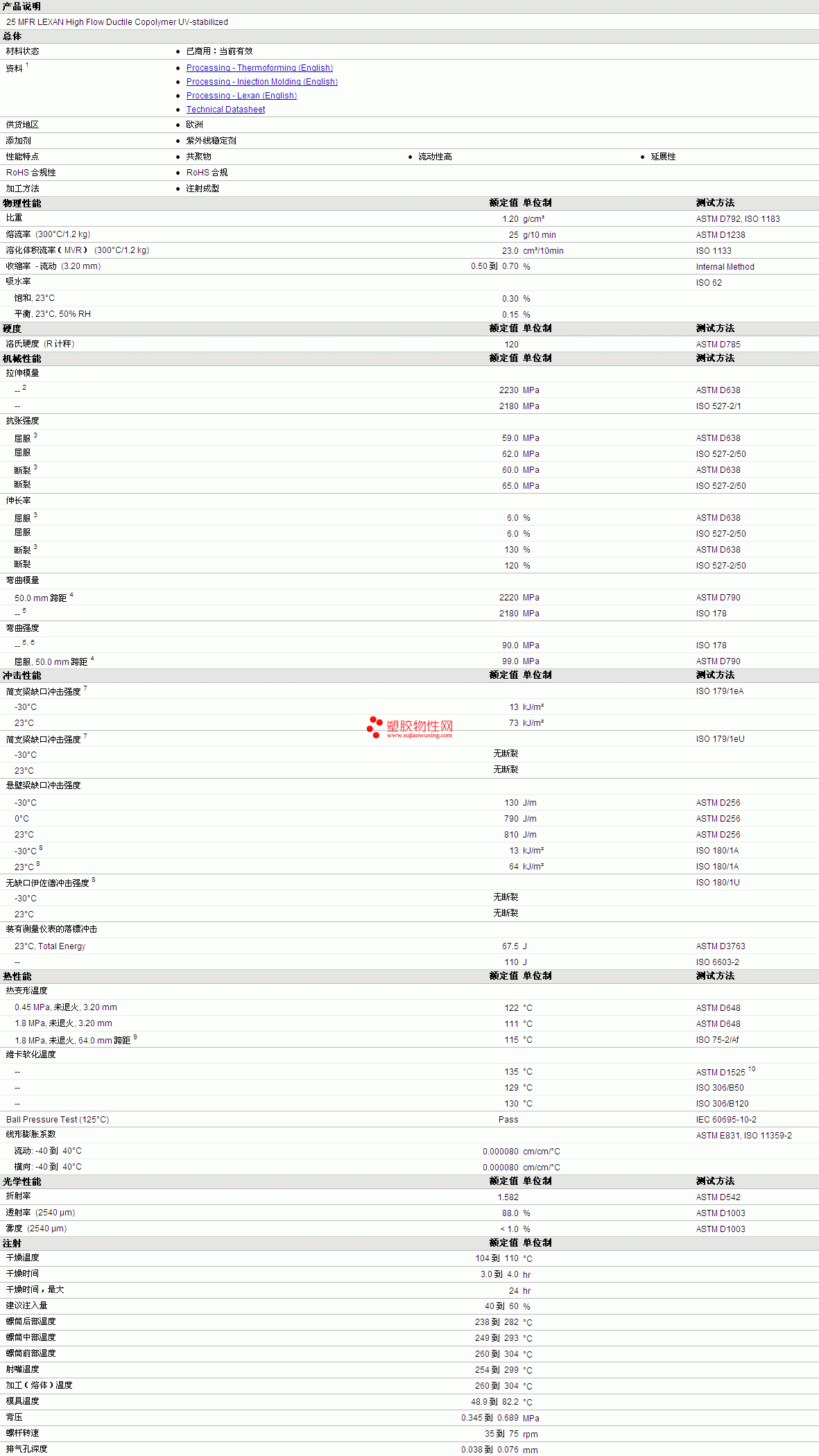 LEXAN PC HFD1731 Resin物性表详细情况如图