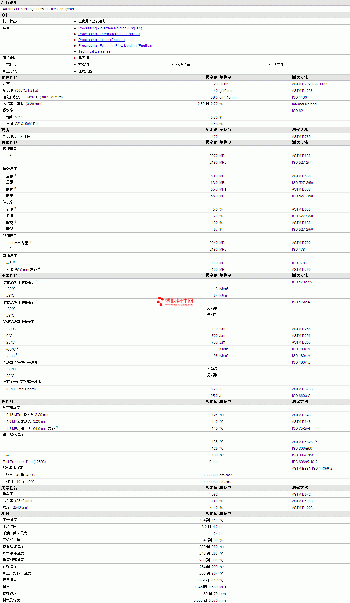 LEXAN PC HFD1810 Resin 物性表详情见附件