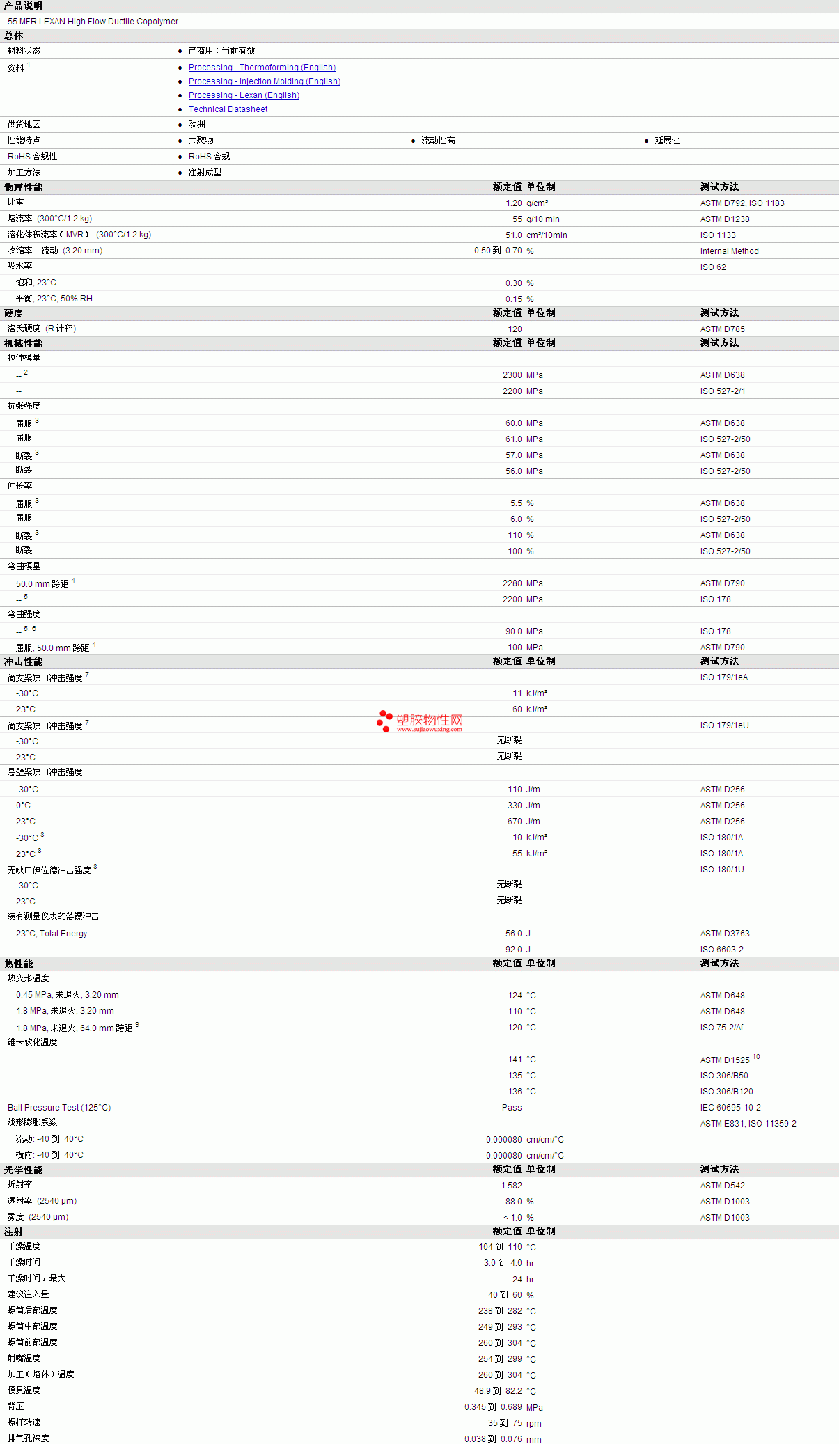 | 溶化体积流率(MVR) (300°C/1.2 kg) | 51.0 | cm³/10min | ISO 1133 |