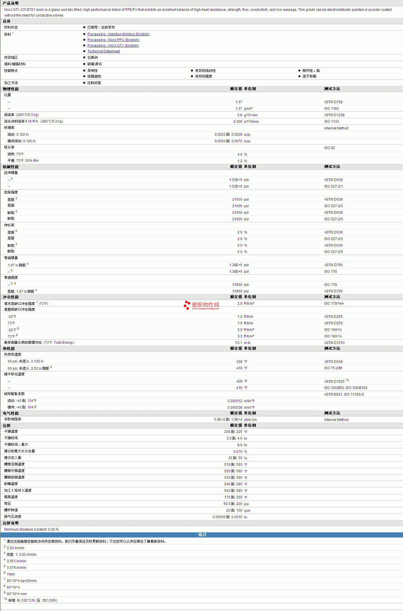 | 溶化体积流率(MVR) (280°C/5.0 kg) | 0.305 | in³/10min | ISO 1133 |