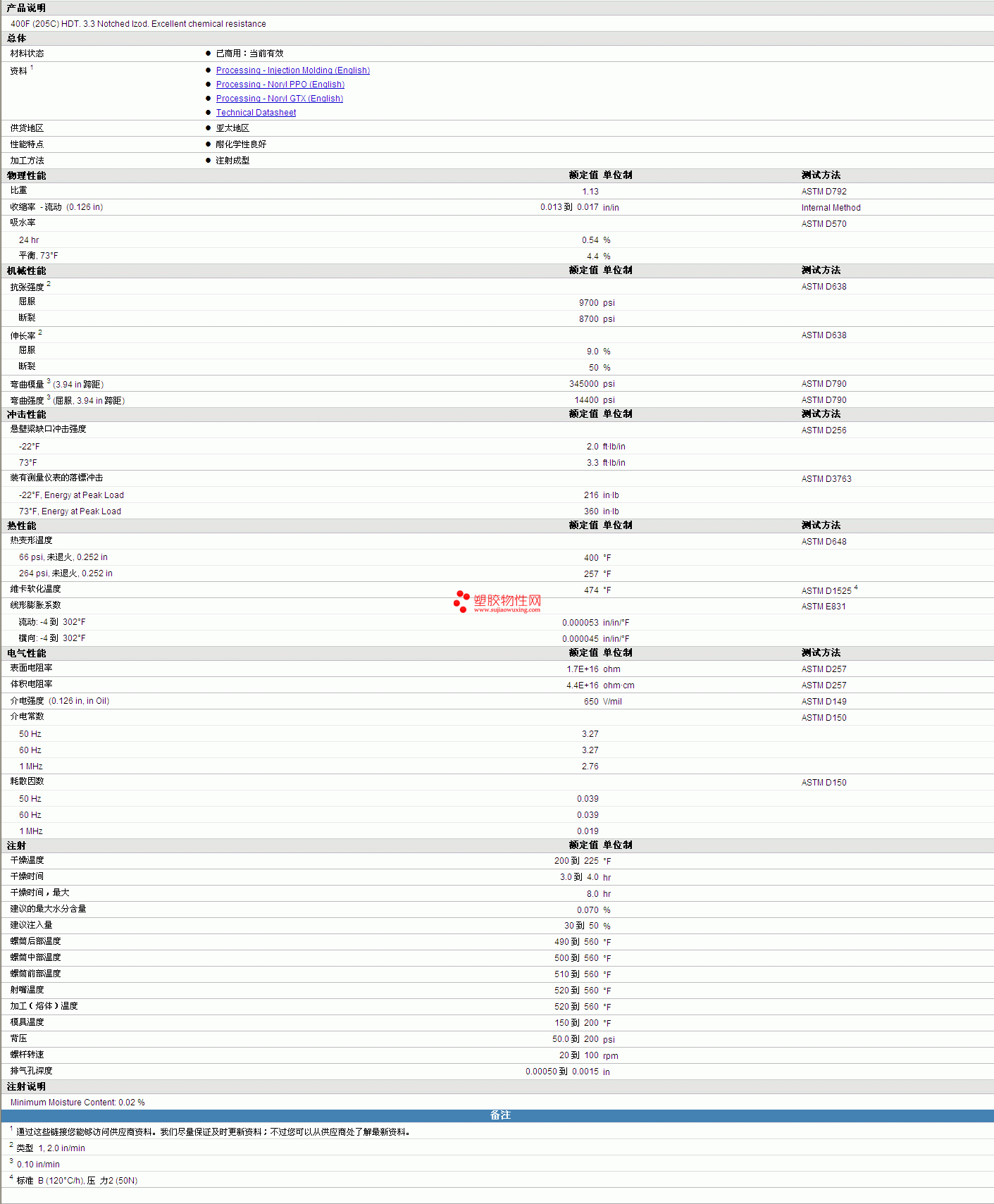 NORYL GTX PPE GTX909 Resin 物性表 如图所示
