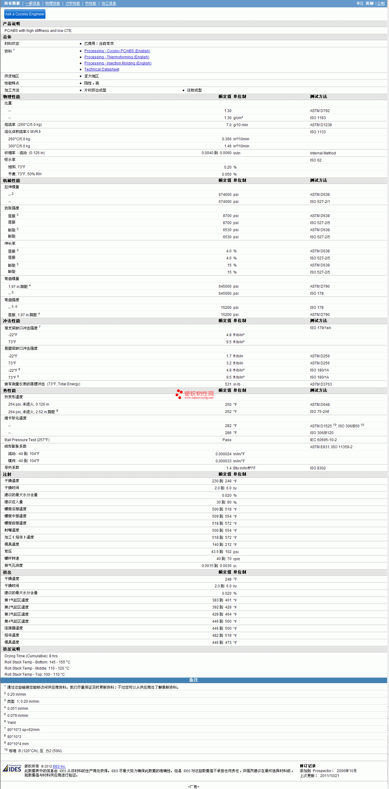 CYCOLOY ABS/PC CE1810 Resin物性表