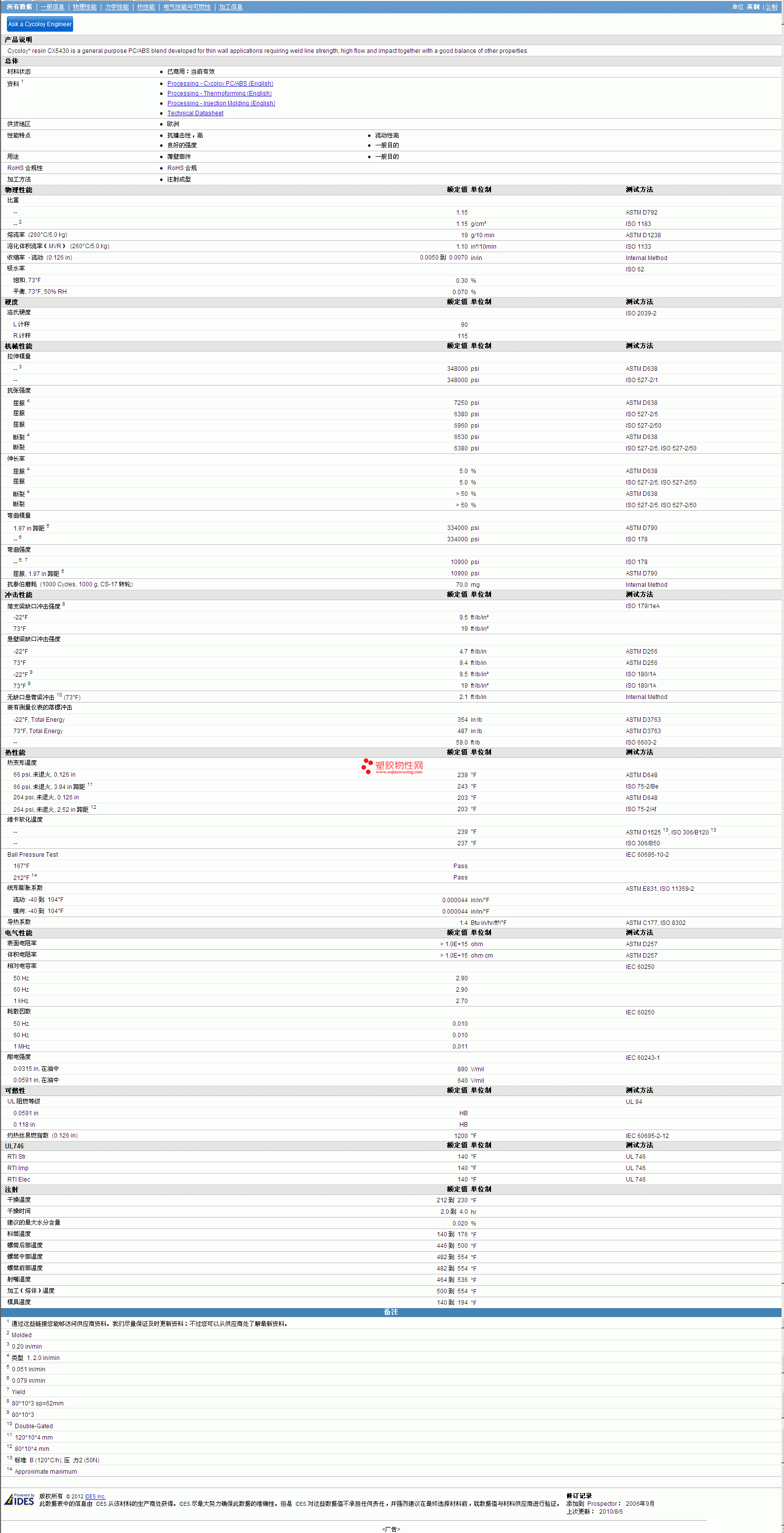 CYCOLOY ABS/PC CX5430 Resin如图所示