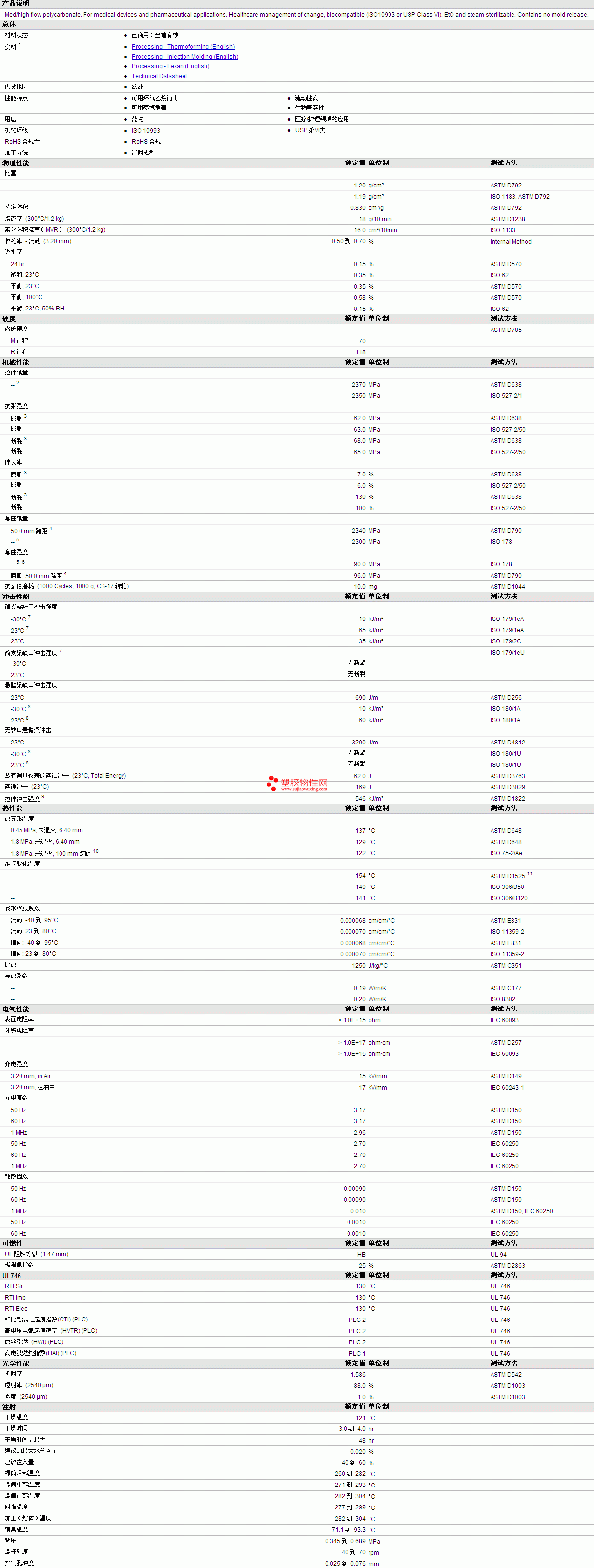 LEXAN PC HP2NR Resin物性表详情见附件