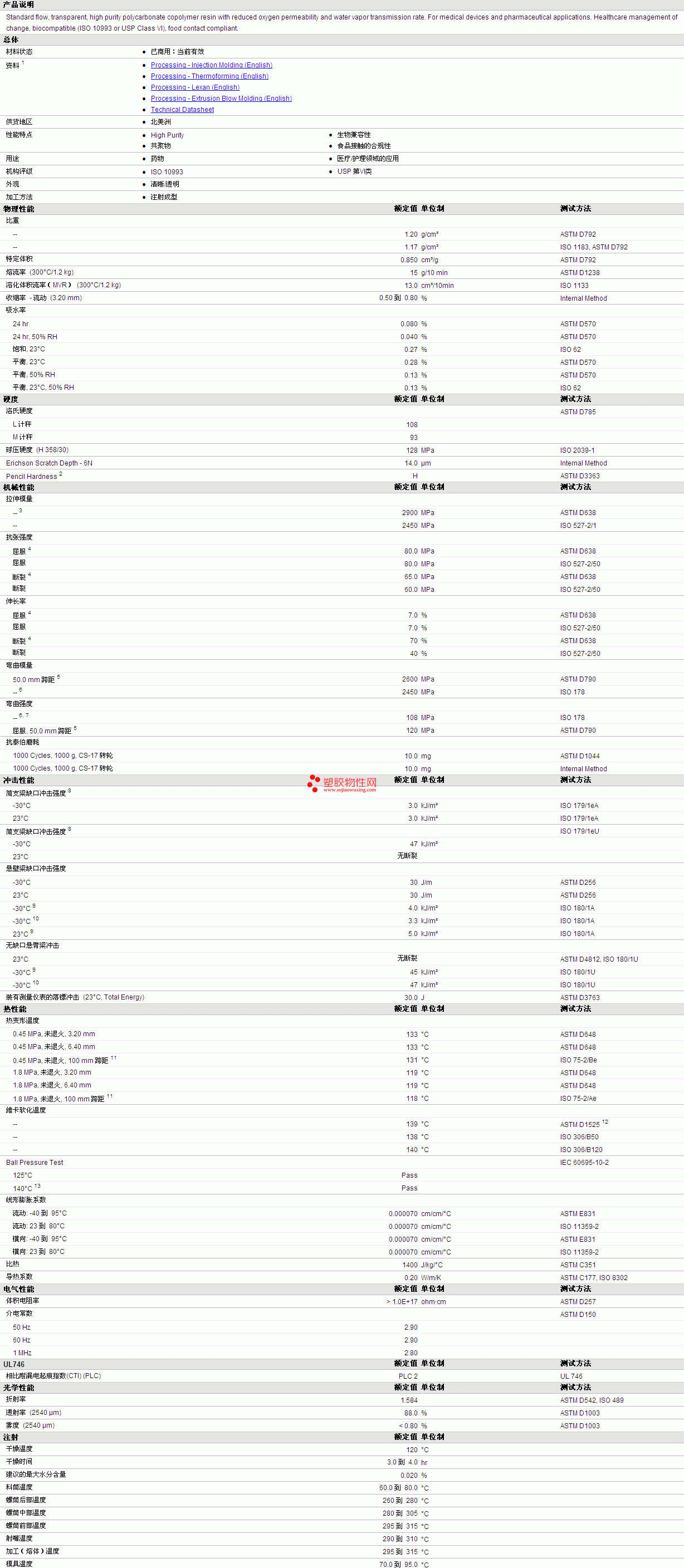 LEXAN PC HPB3144G Resin物性表详情见附件