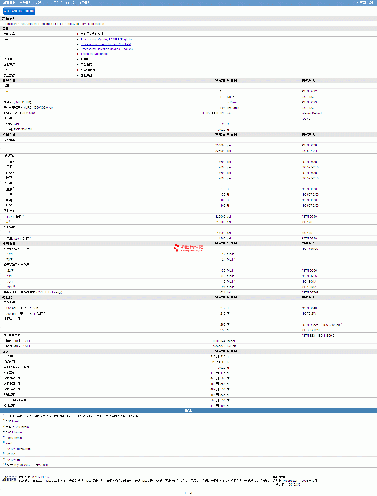 需了解CYCOLOY ABS/PC CY200FC Resin物性表材质证明、ROHS(SGS)报告、物质安全资料表(MSDS)、UL黄卡等可来电咨询:赵先生:13424755533或QQ: 27660005