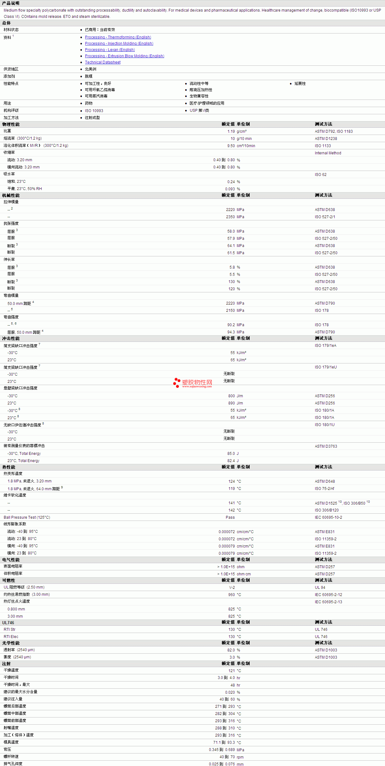 | 溶化体积流率(MVR) (300°C/1.2 kg) | 9.50 | cm³/10min | ISO 1133 |