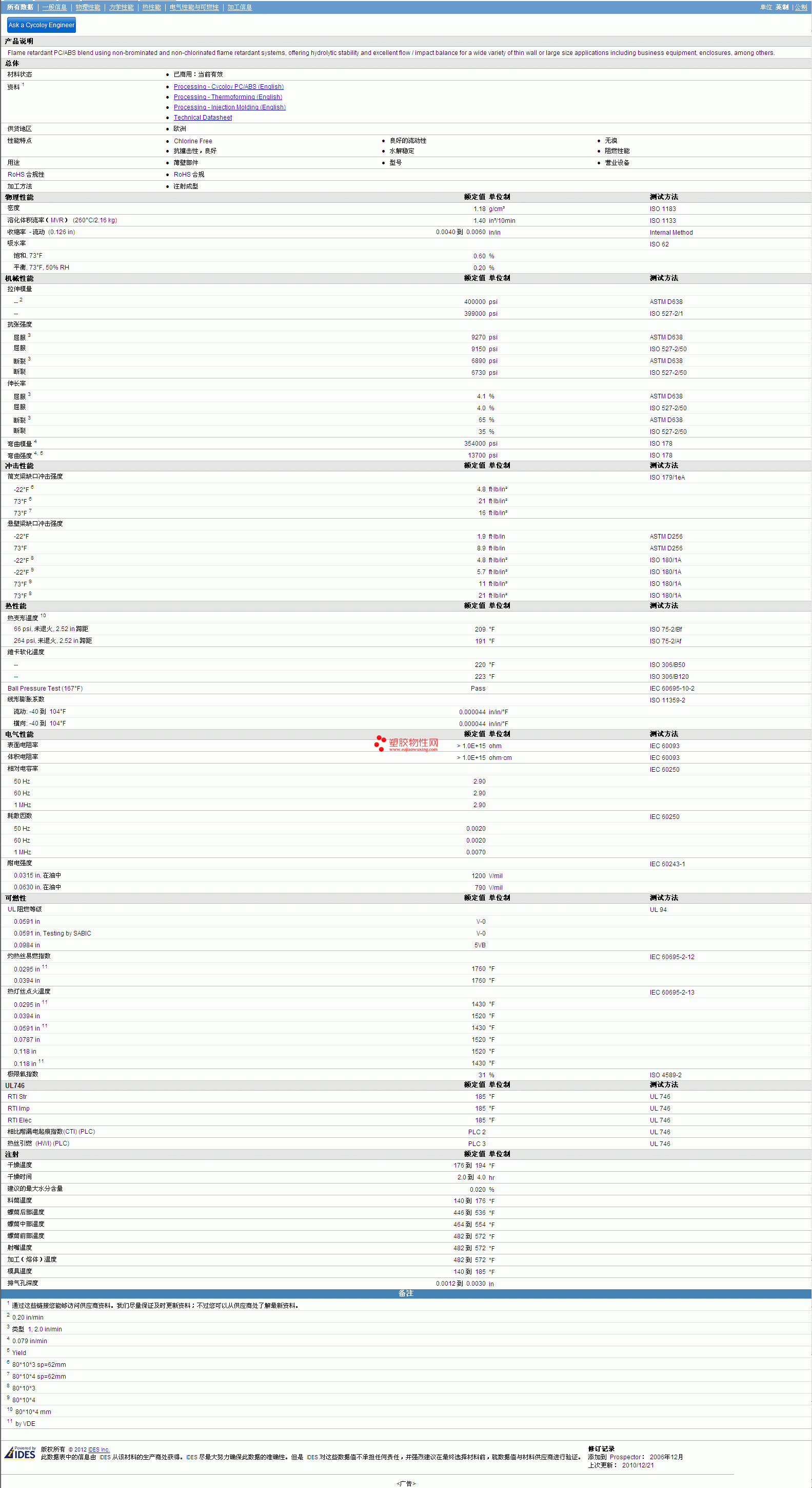 需了解CYCOLOY ABS/PC CY6110 Resin物性表更多详情,材质证明、ROHS(SGS)报告、物质安全资料表(MSDS)、UL黄卡等,最新行情报价等可来电咨询:赵先生:13424755533或QQ: 27660005