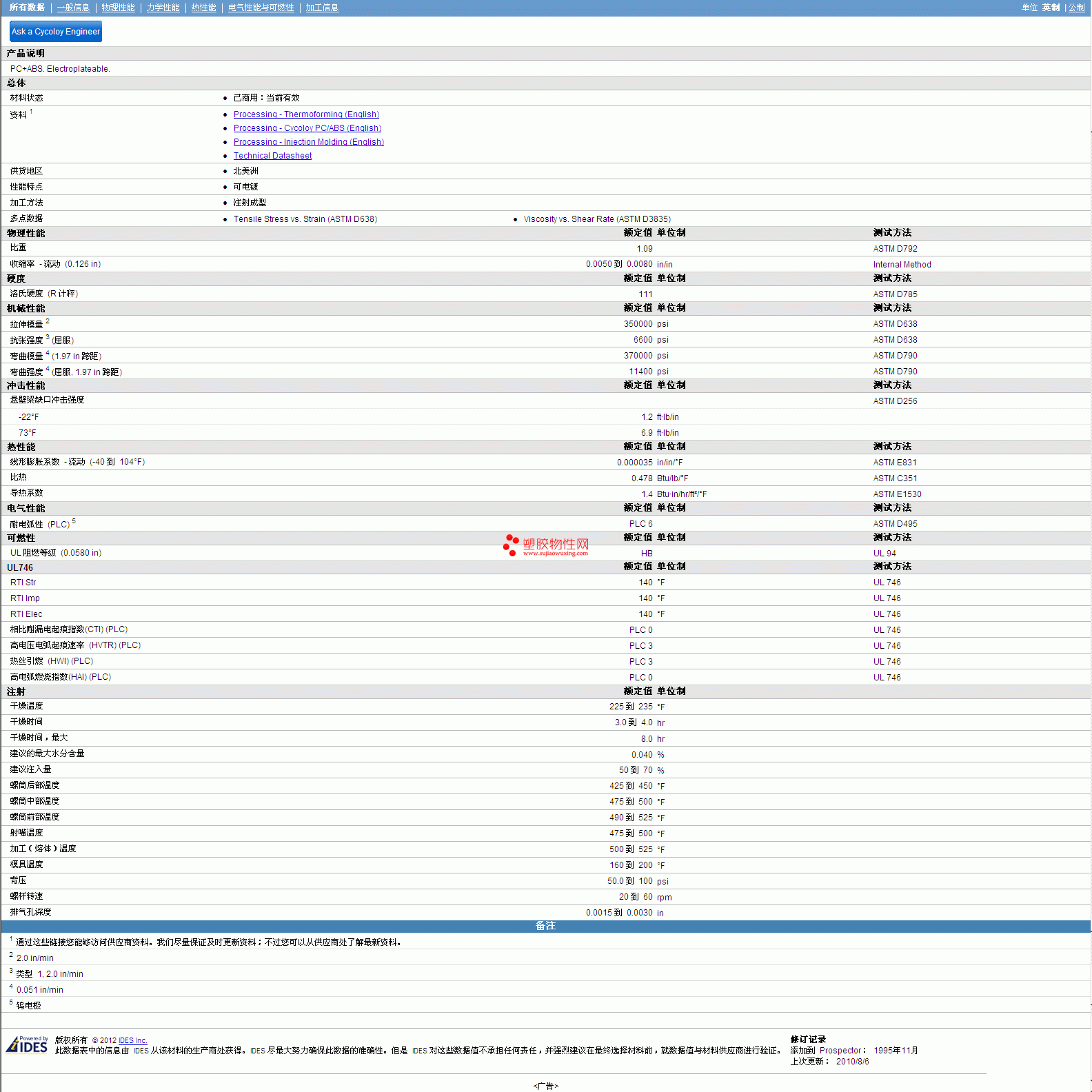 更多CYCOLOY ABS/PC EHA Resin物性表报价,图片、材质证明、UL黄卡、物质安全资料表(MSDS)等可来电咨询赵先生:13424755533或QQ: 27660005