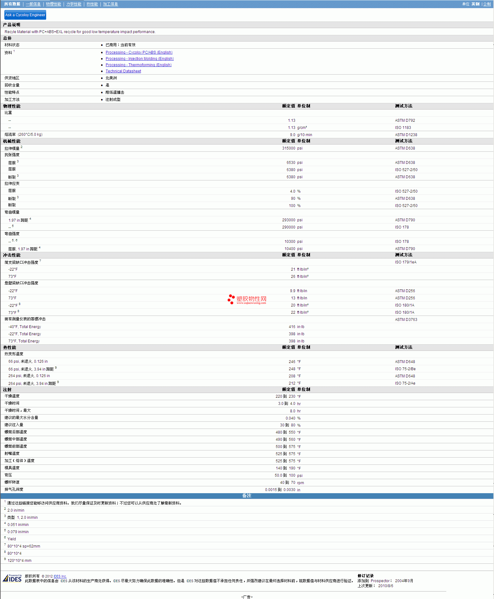 CYCOLOY ABS/PC EXCY0025 Resin物性表
