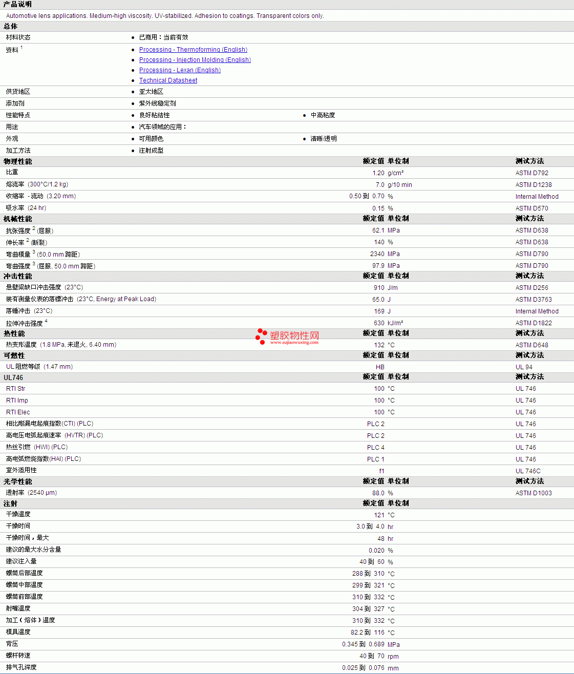 LEXAN PC LS3 Resin物性表如图所示