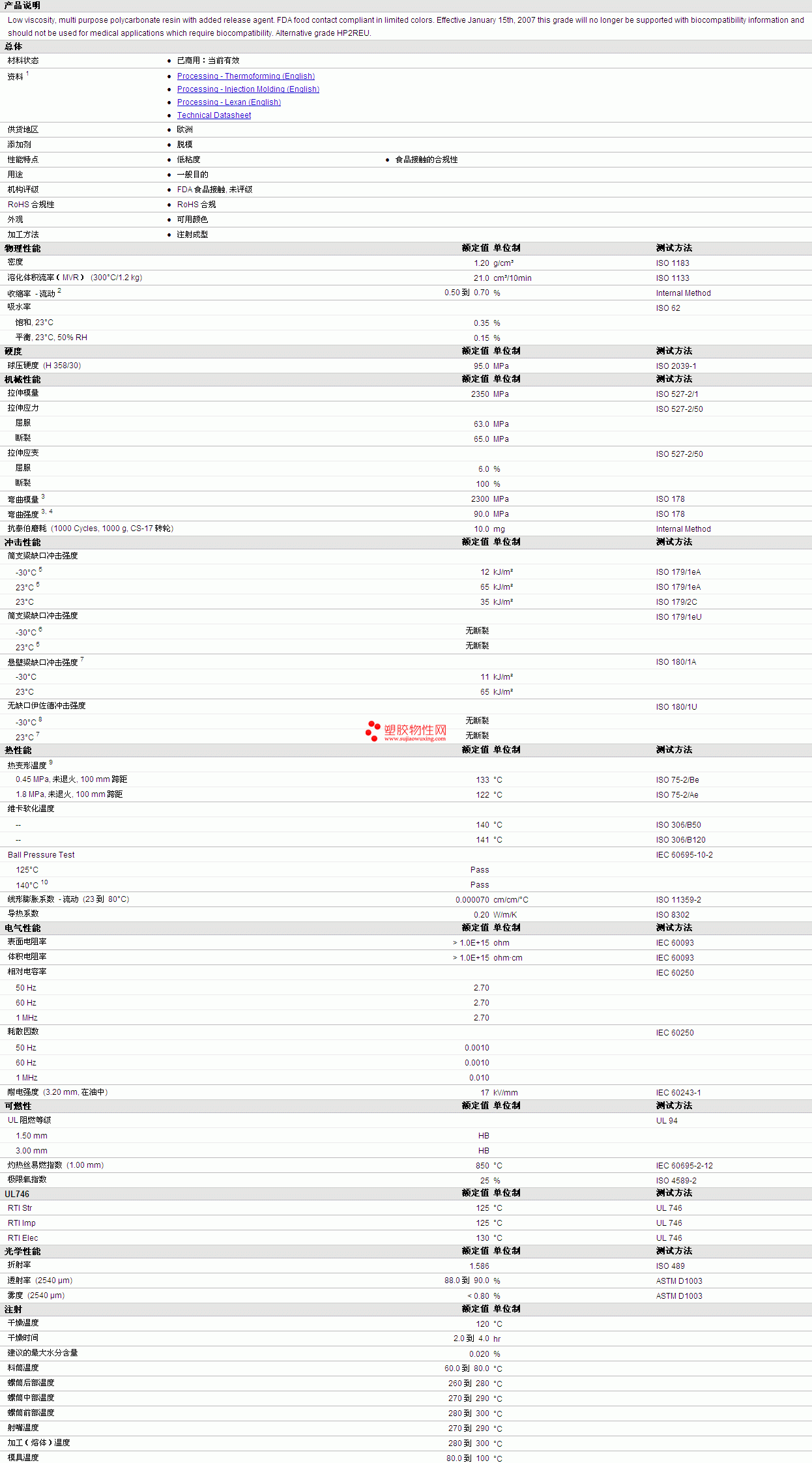 更多LEXAN PC ML124R Resin物性表报价,图片、材质证明、UL黄卡、物质安全资料表(MSDS)等,最新行情报价等可来电咨询或QQ:767320520