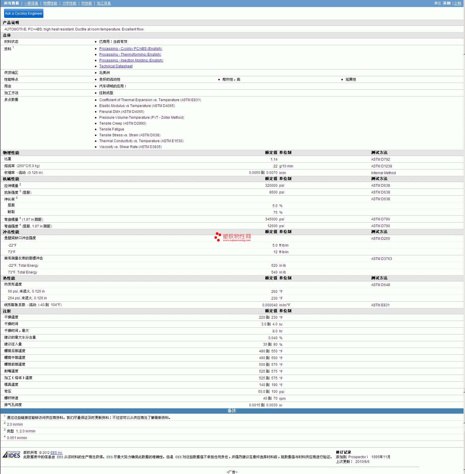 更多CYCOLOY ABS/PC MC9000 Resin物性表报价,图片、材质证明、UL黄卡、物质安全资料表(MSDS)等,最新行情报价等可来电咨询赵先生:13424755533或QQ: 27660005