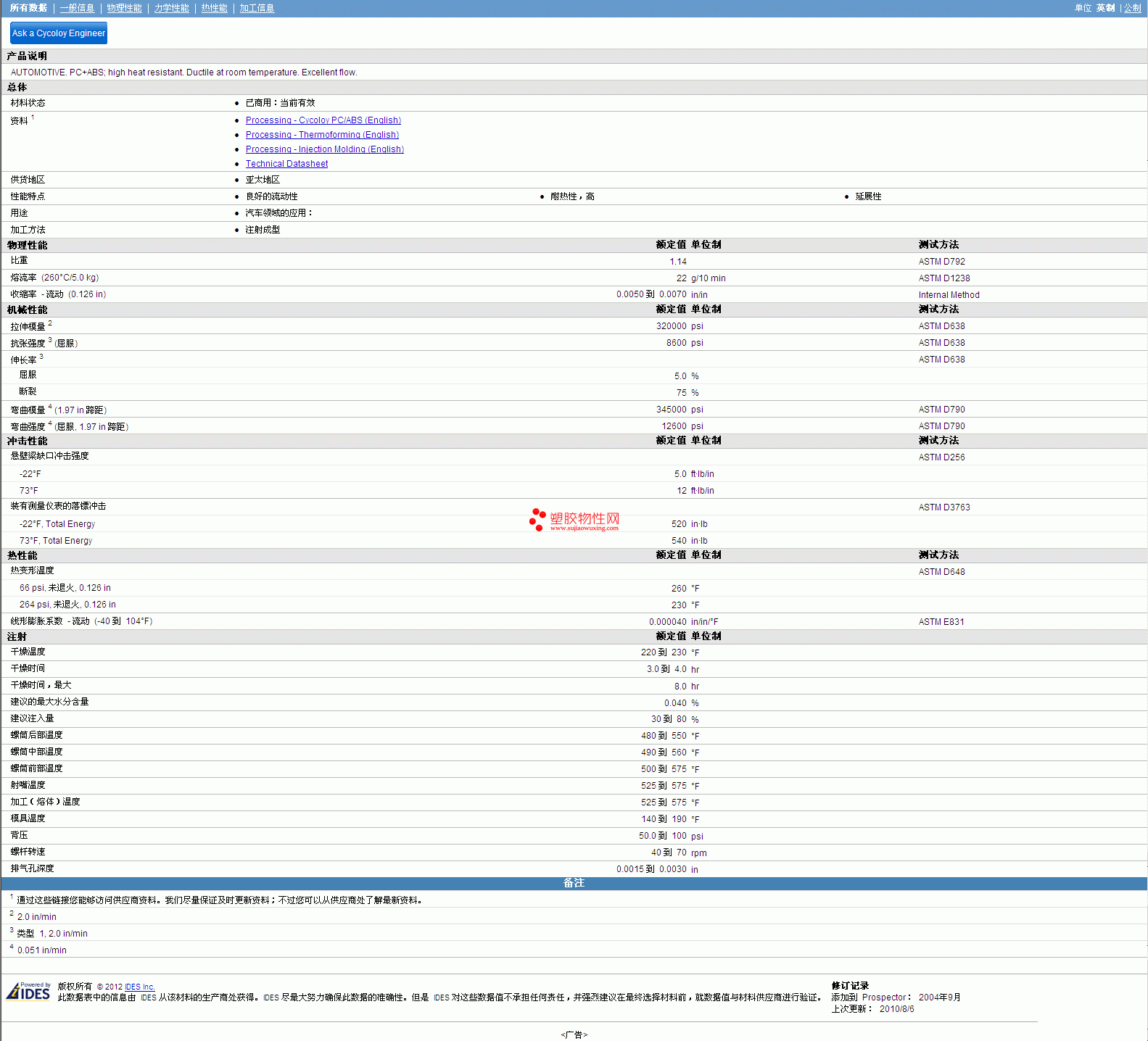 需要了解CYCOLOY ABS/PC MC9000 Resin更多详情,赵先生:13424755533或QQ: 27660005