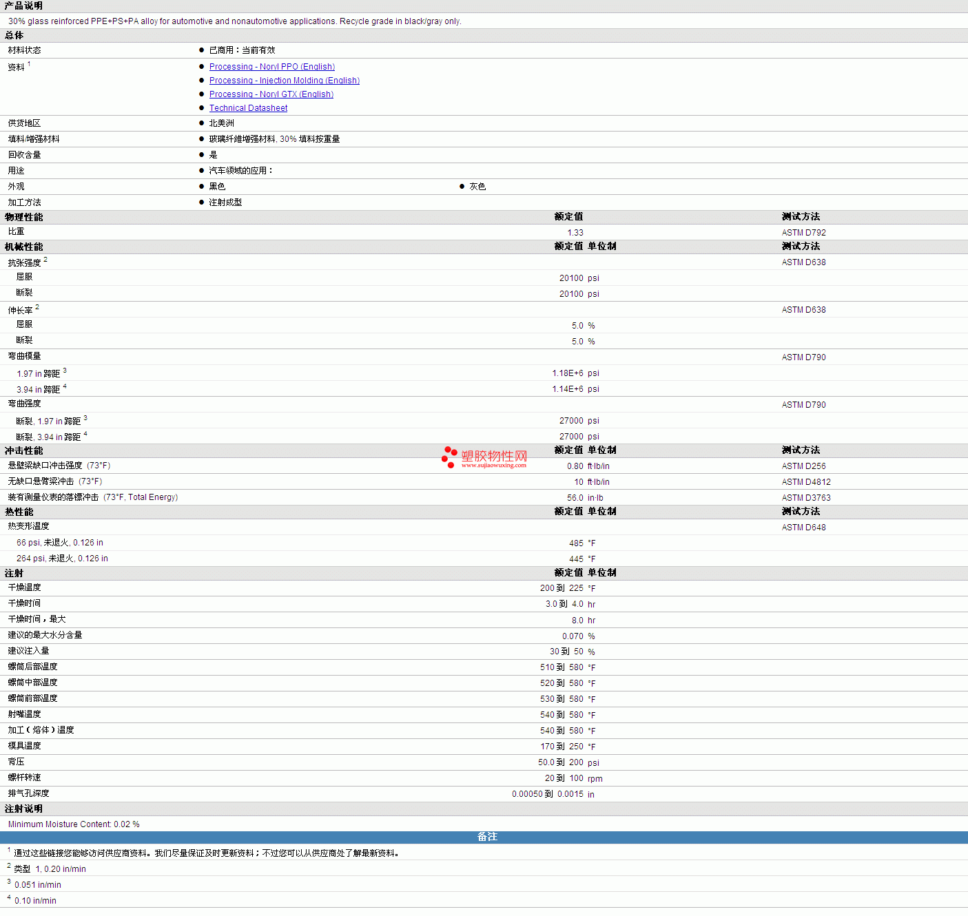 NORYL GTX PPE RNX130 Resin 物性表 详情见附件