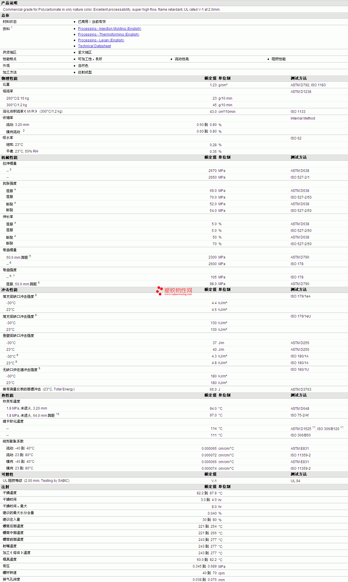 LEXAN PC ML7677A Resin物性表更多资料见图