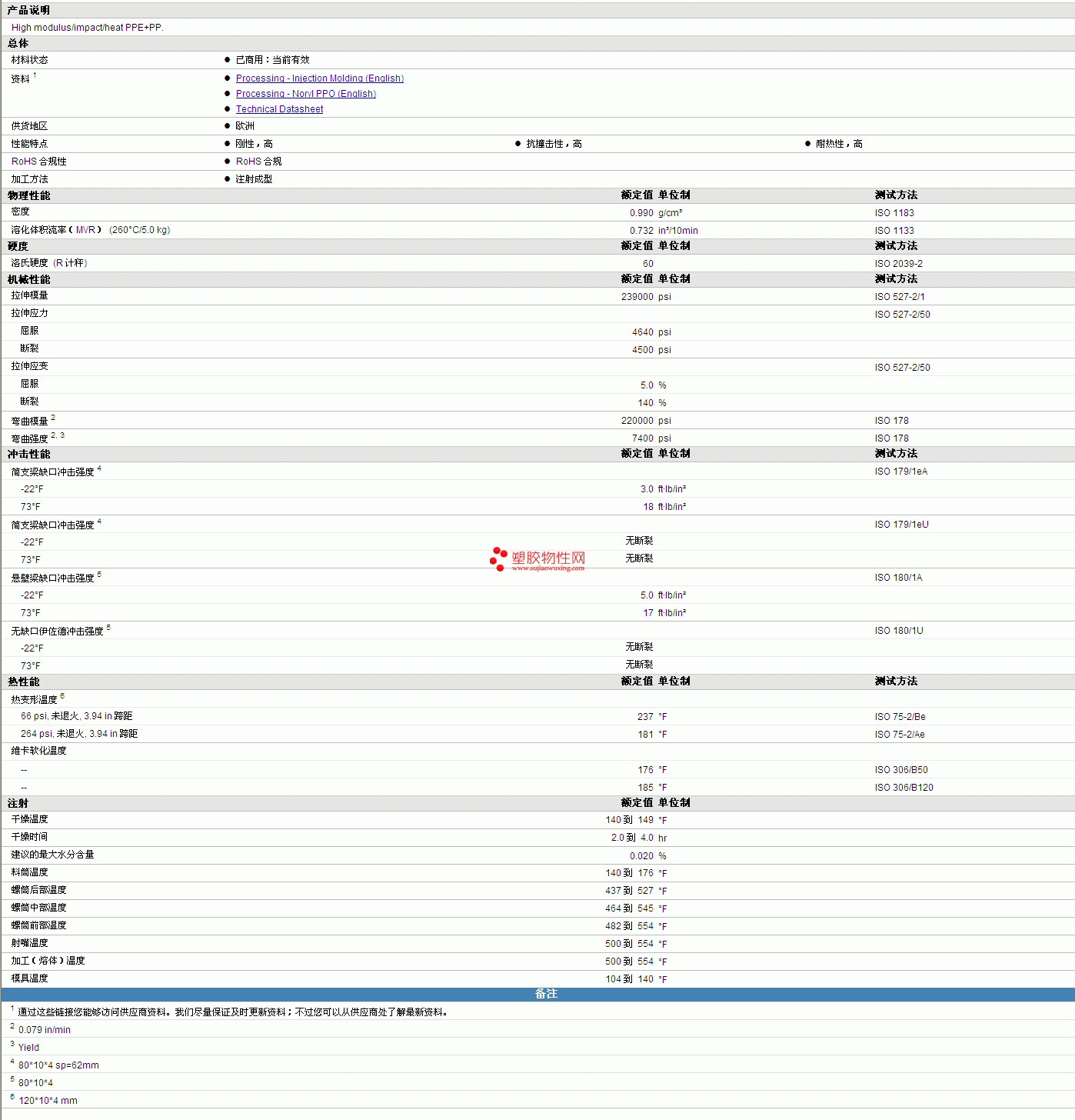 | 拉伸模量 | 239000 | psi | ISO 527-2/1 |