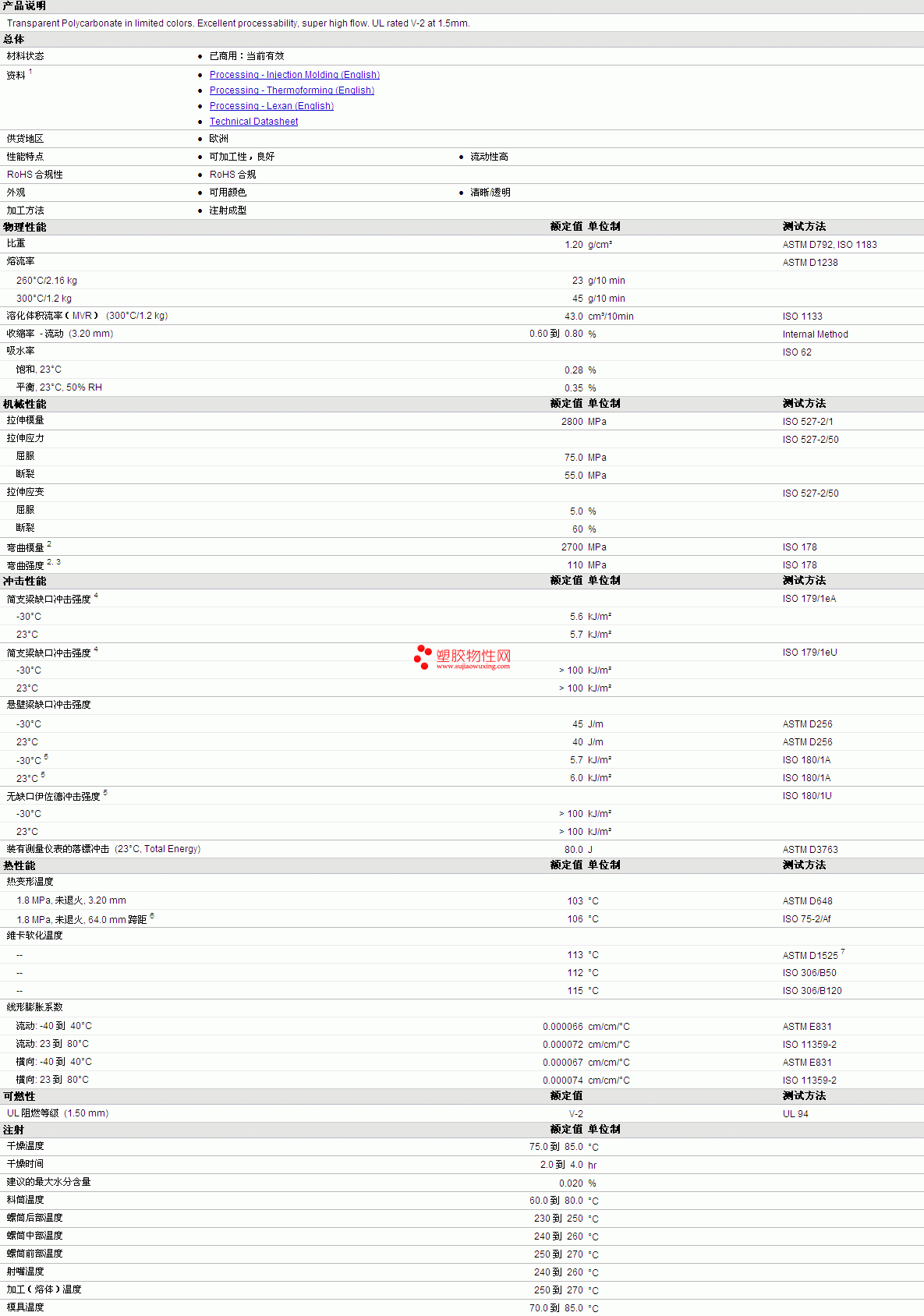 更多LEXAN PC ML7686 Resin物性表图片,报价、物质安全资料表(MSDS)、材质证明、UL黄卡等,最新行情报价等可咨询QQ:767320520