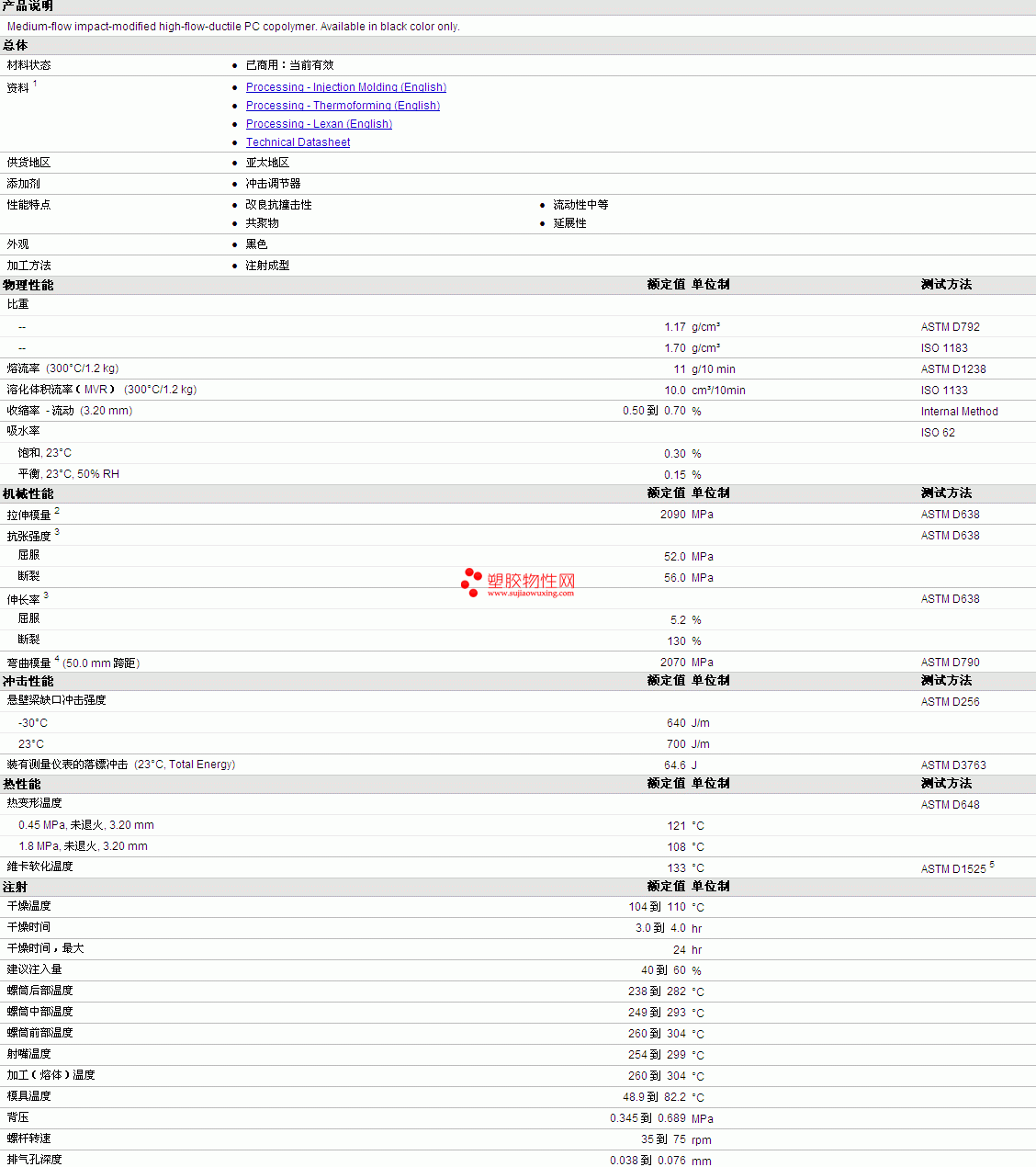 需要了解LEXAN PC ML7693 Resin物性表更多详情,可咨询QQ:767320520