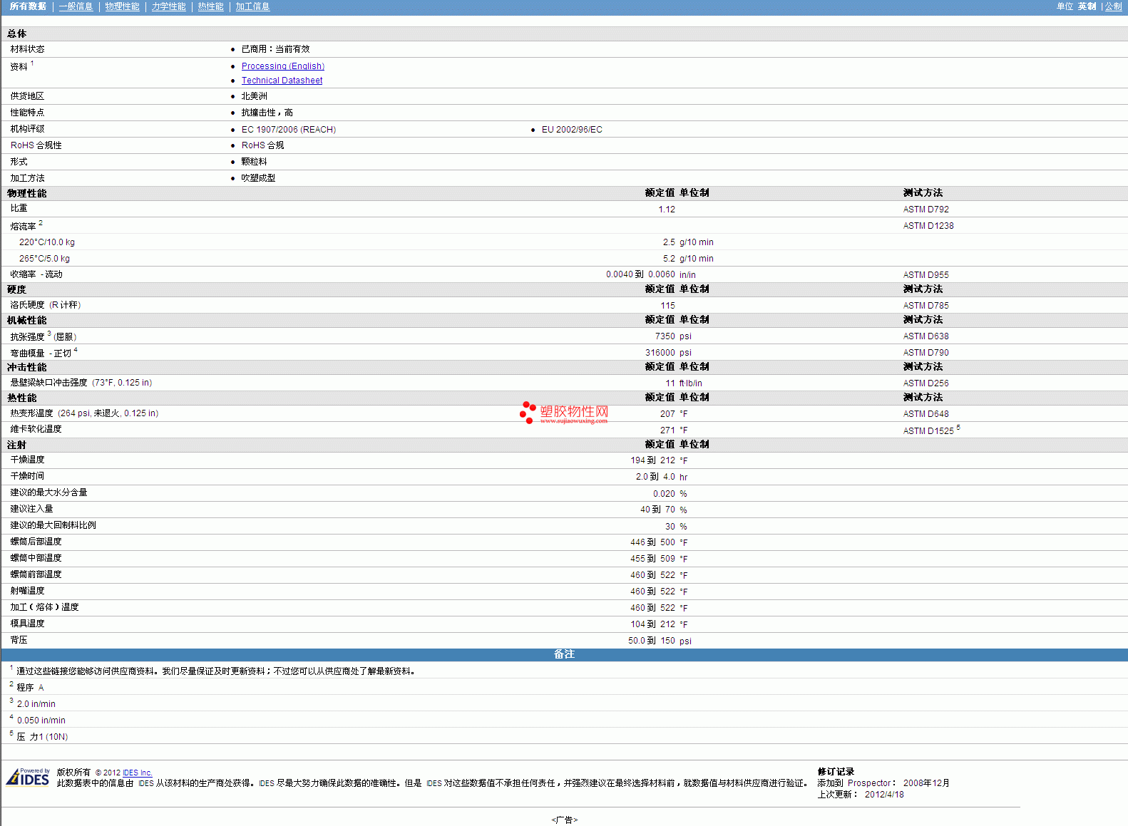 更多DIAMALOY ABSPC 9901B物性表报价,图片、材质证明、UL黄卡、物质安全资料表(MSDS)等可来电咨询赵先生:13424755533或QQ: 27660005