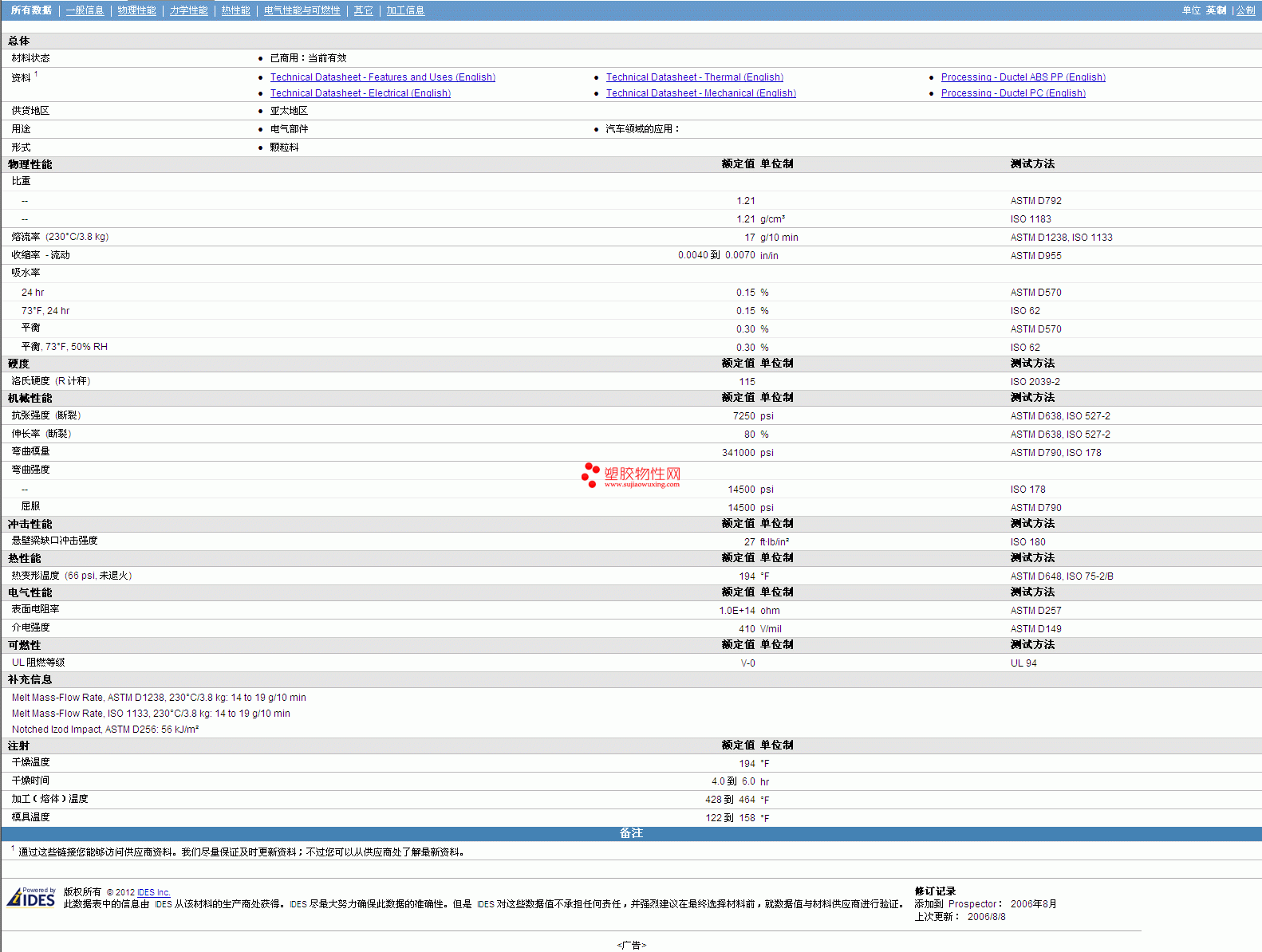 需了解DUCTEL ABS/PC CS9000物性表材质证明、ROHS(SGS)报告、物质安全资料表(MSDS)、UL黄卡等可来电咨询:赵先生:13424755533或QQ: 27660005