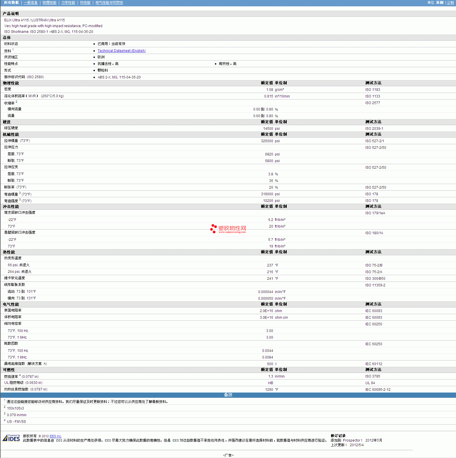 如需了解ELIX ABS/PC Ultra 4115物性表更多详情,ROHS(SGS)报告、物质安全资料表(MSDS)、材质证明、UL黄卡等,最新行情报价等可来电咨询:赵先生:13424755533或QQ: 27660005