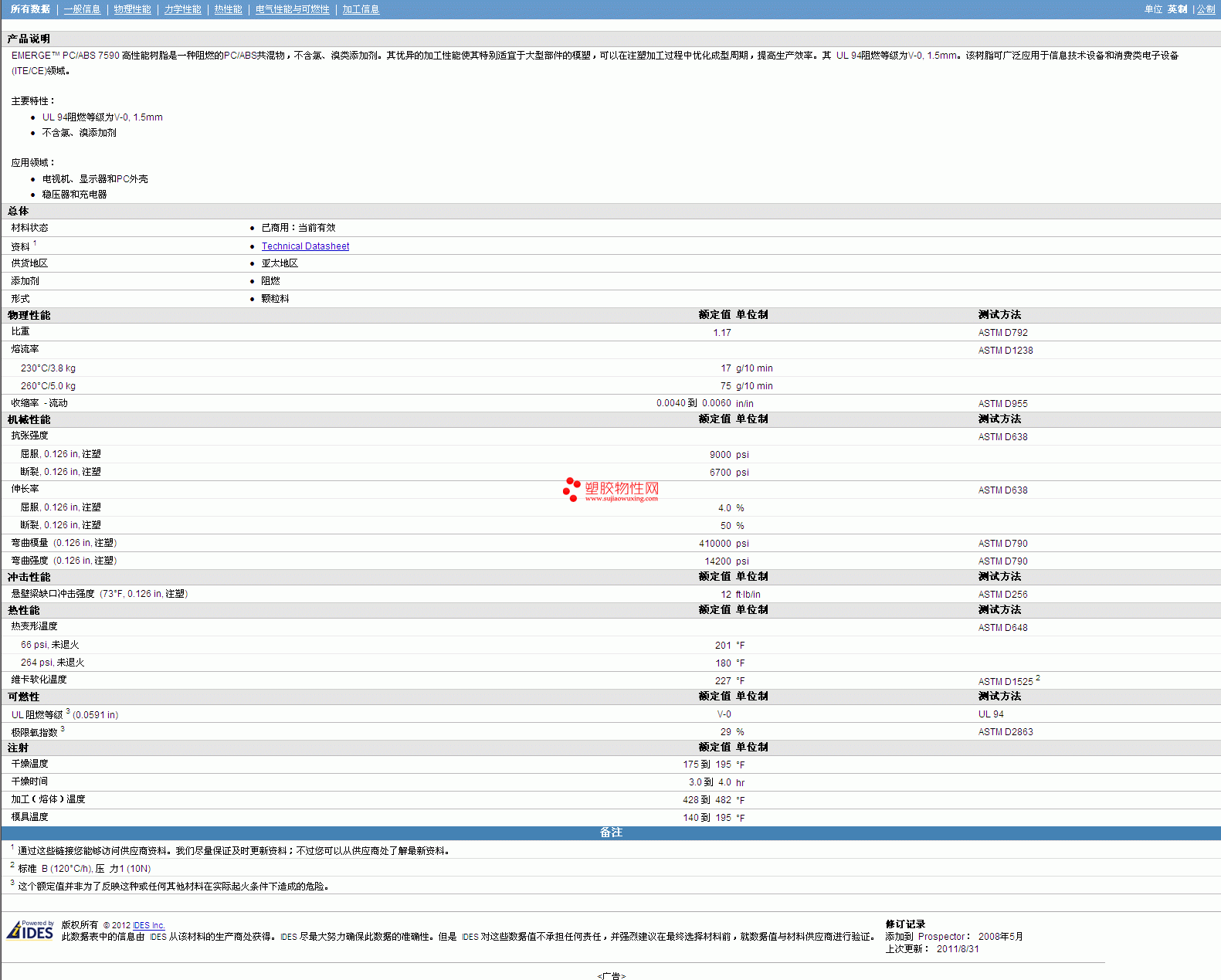 如需了解EMERGE PC/ABS 7590物性表更多详情,ROHS(SGS)报告、物质安全资料表(MSDS)、材质证明、UL黄卡等,最新行情报价等可来电咨询:赵先生:13424755533或QQ: 27660005