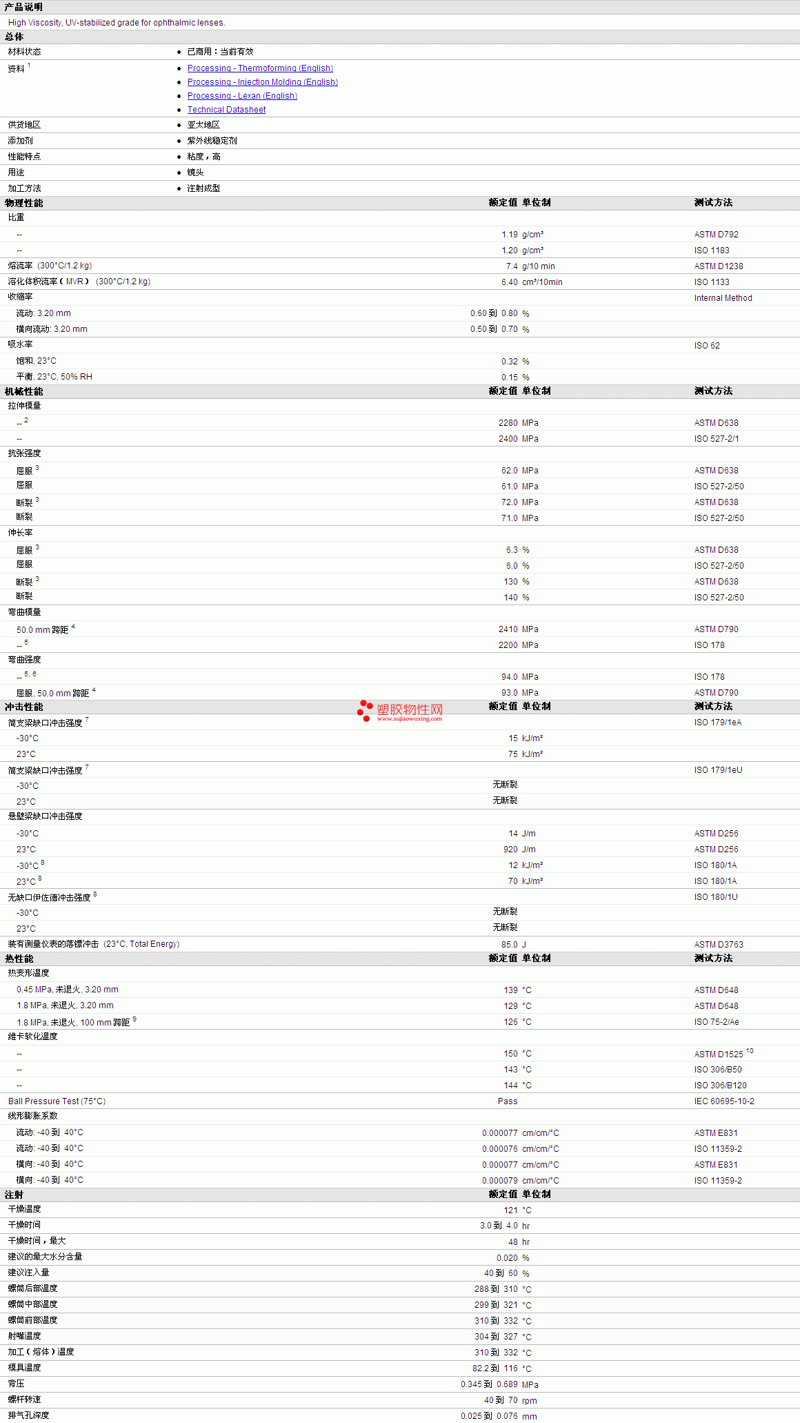 LEXAN PC OQ3820 Resin物性表详情见附件
