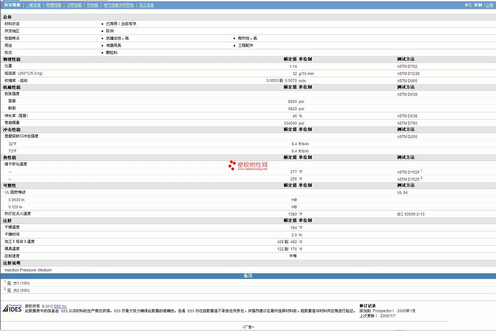 其他工程塑料物性表