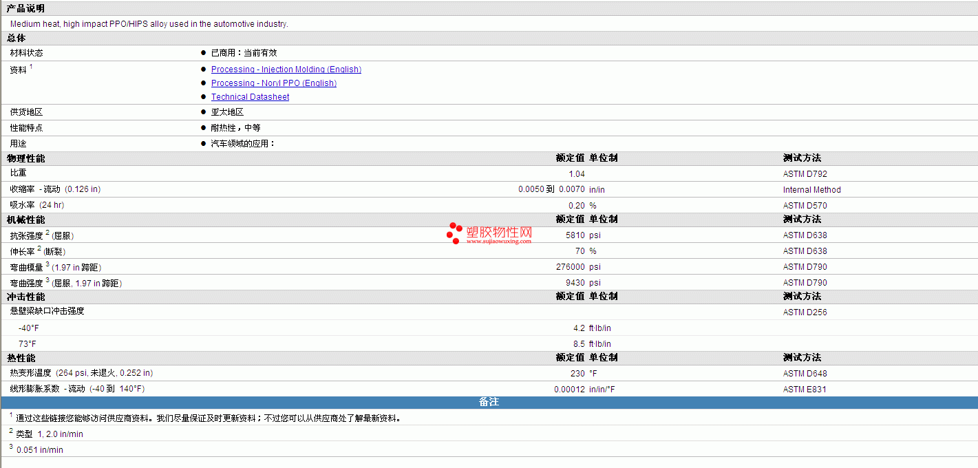 | 机械性能 | 额定值 | 单位制 | 测试方法 |