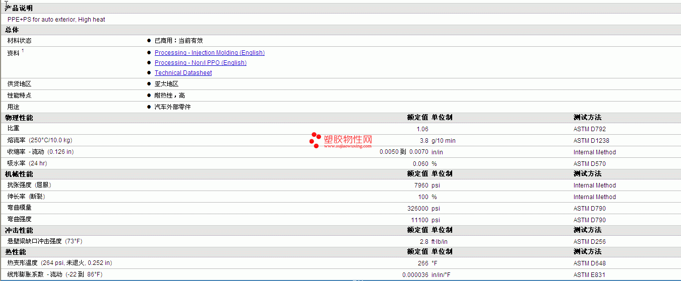 | 机械性能 | 额定值 | 单位制 | 测试方法 |