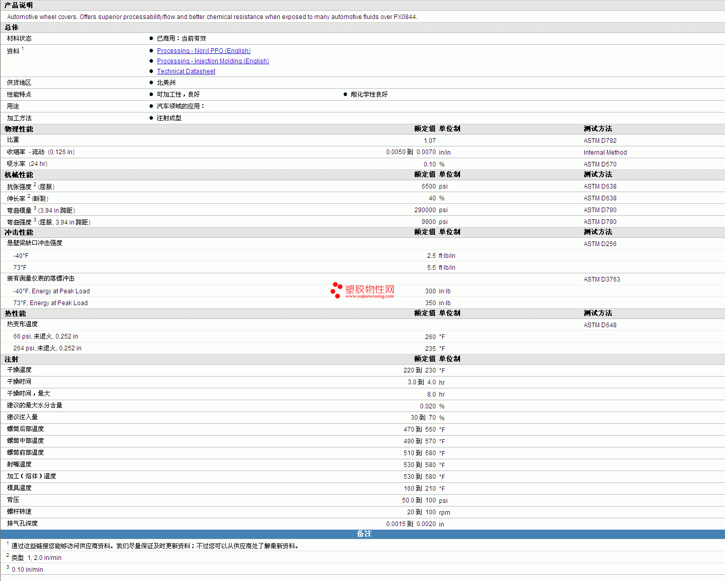 | 机械性能 | 额定值 | 单位制 | 测试方法 |