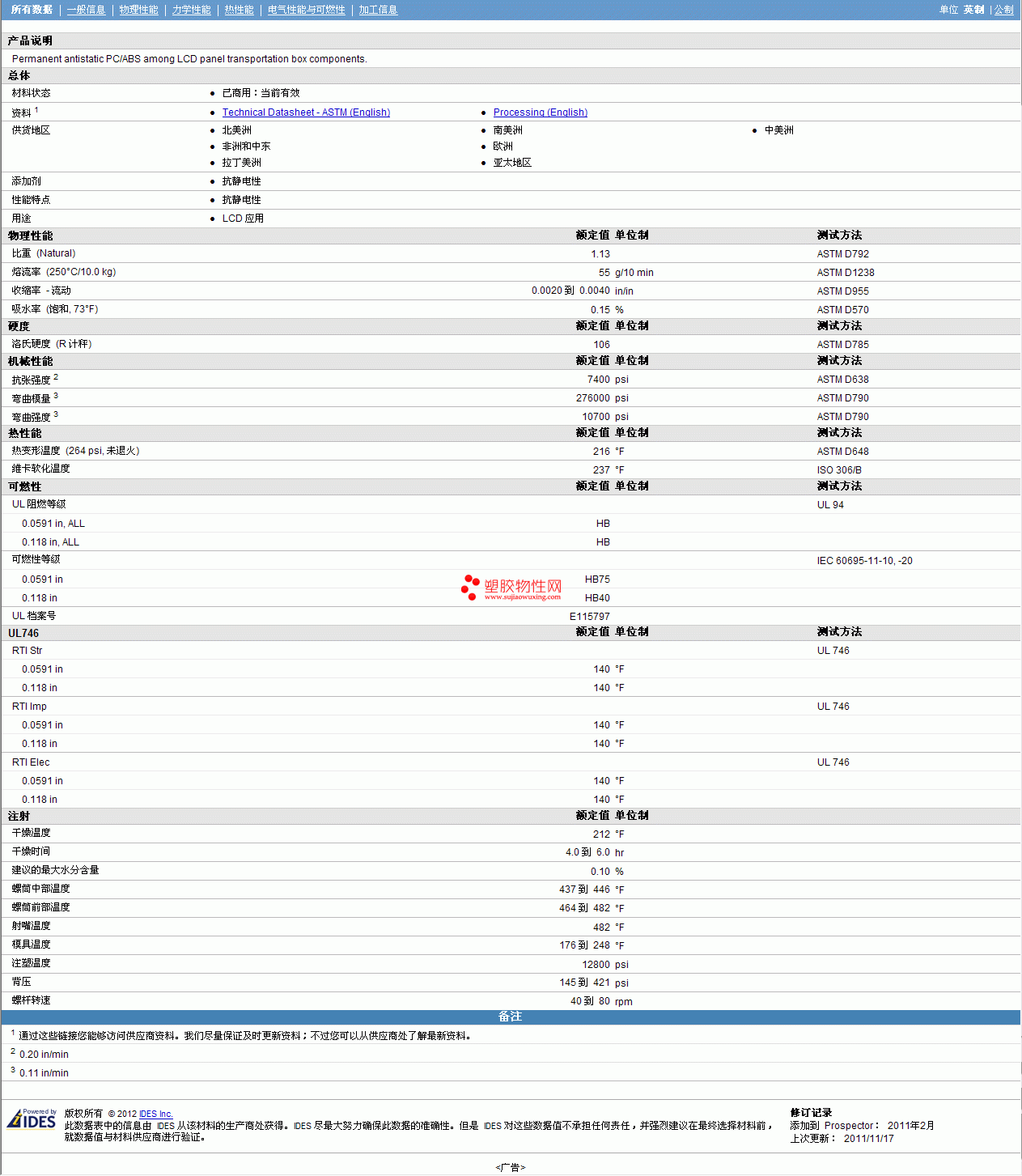 如需了解Infino ABS/PC HA-1011物性表更多详情,ROHS(SGS)报告、物质安全资料表(MSDS)、材质证明、UL黄卡等,最新行情报价等可来电咨询:赵先生:13424755533 或QQ:27660005
